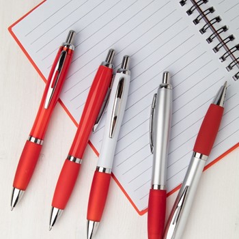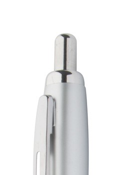 Plastični kemični svinčnik s srebrnim tulcem in barvnim gumijastim ročajem. Z modrim polnilom.