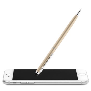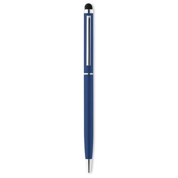 Kemični svinčnik iz aluminija, s stylus konico in kromiranimi dodatki. Modro črnilo.