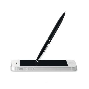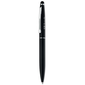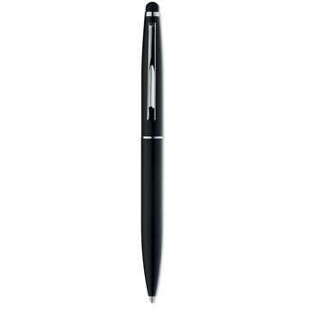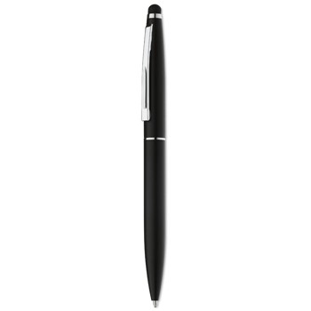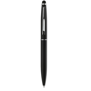 Kemični svinčnik iz aluminija z mat finišen in stylus pisalom za ekrane na dotik na vrhu. Modro črnilo.