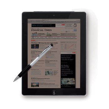 Plastičen kemični svinčnik s silikonskim vrhom za ekrane na dotik. Modro črnilo.