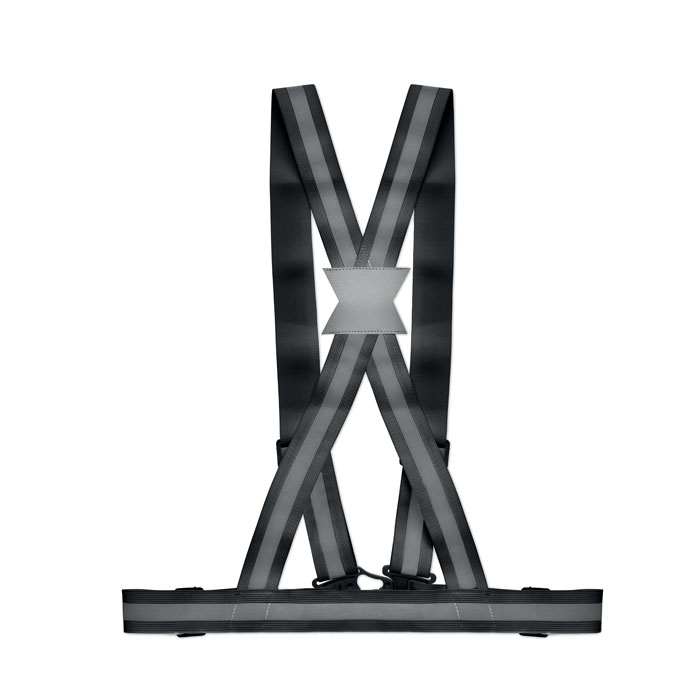Adjustable 360°reflective body belt with silver stripes. For promotional use only.