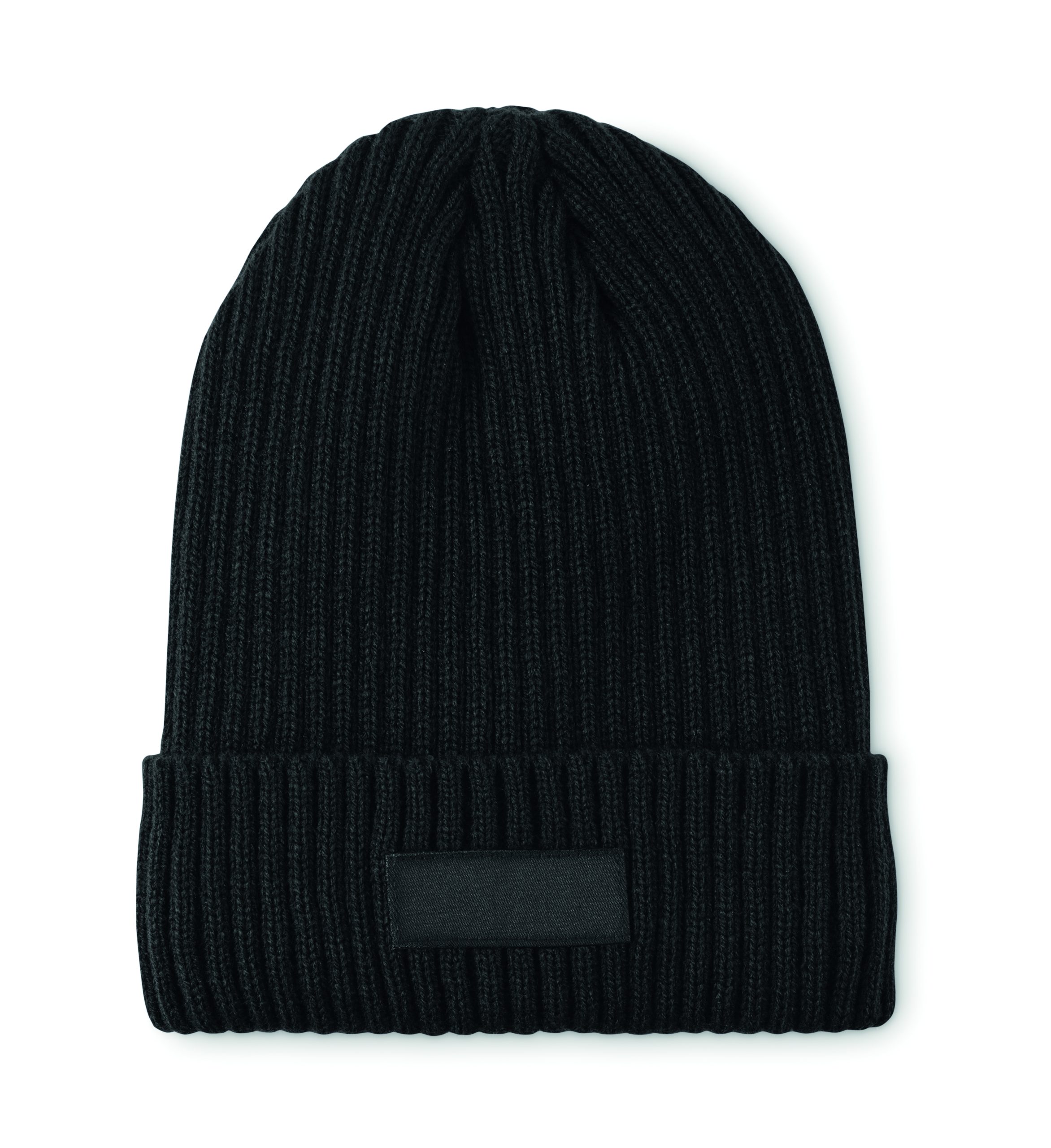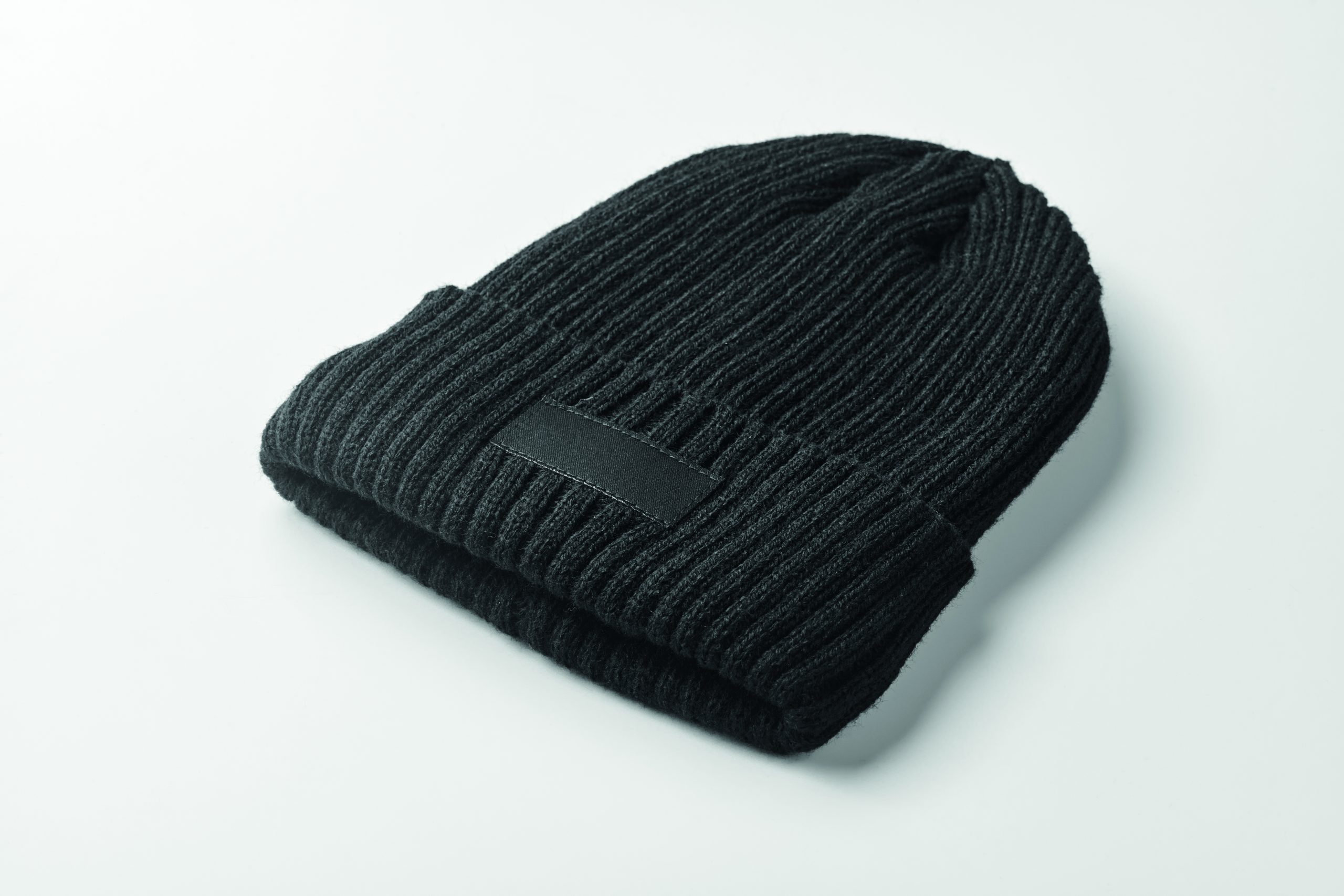 Unisex knitted beanie hat in acrylic outside and polyester inside with 3M insulation and rolled up cuff. One-size-fits-all design.