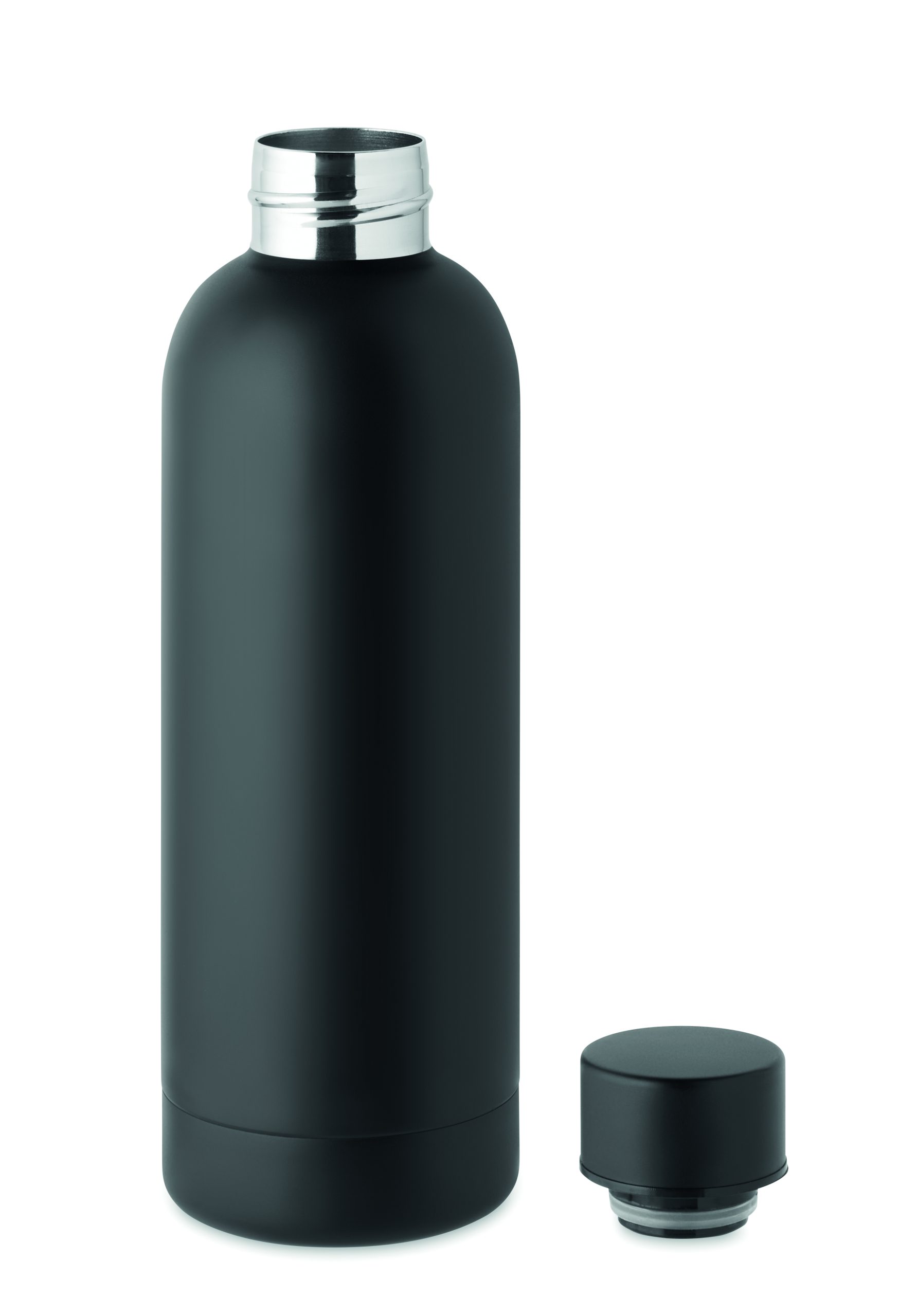 Double wall insulating vacuum bottle in recycled stainless steel (90% recycled stainless steel and 10% stainless steel). Capacity 500 ml. Leak free.