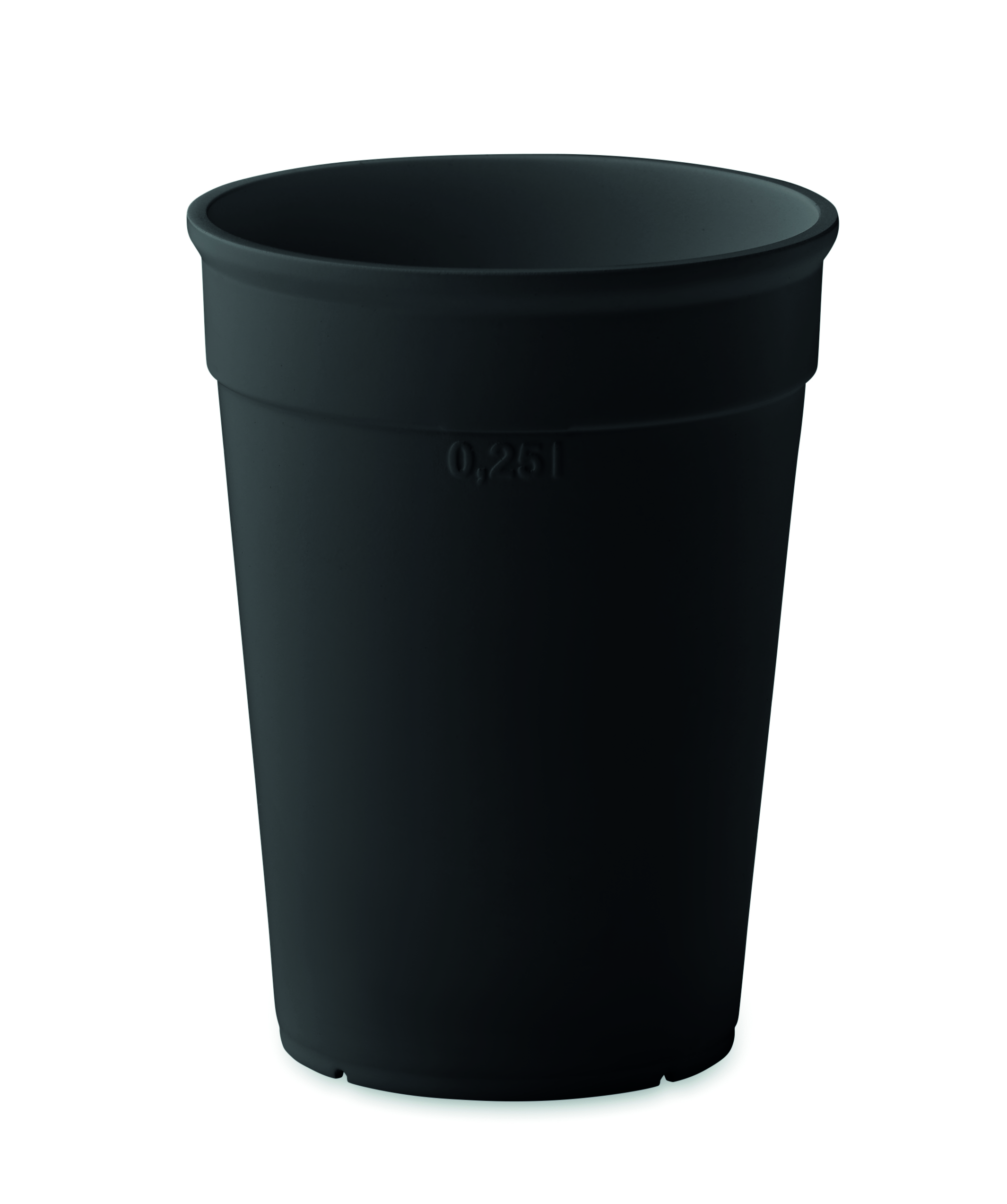 Reusable single wall coffee cup in PP. Capacity: 250 ml. As this is a single walled mug, heat transfer can still occur.