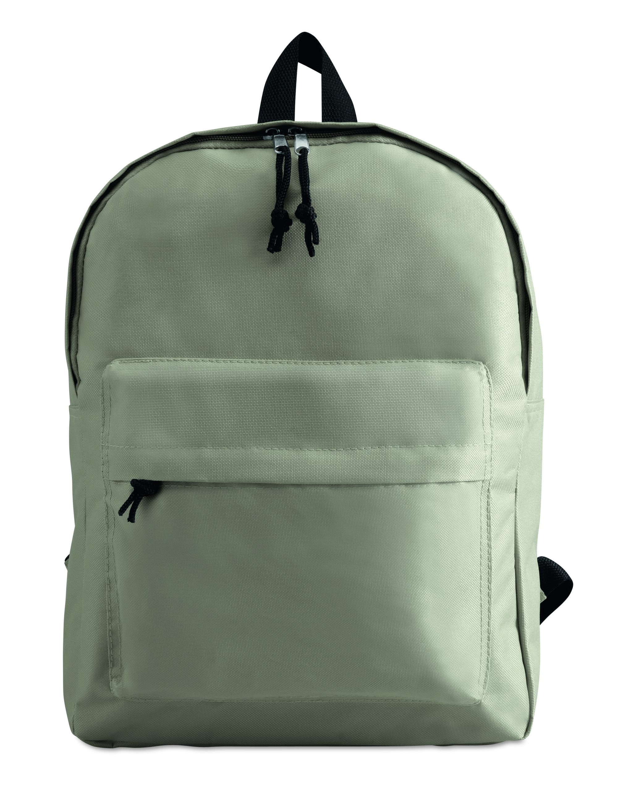 Backpack in 600D polyester with outside pocket with zipper.