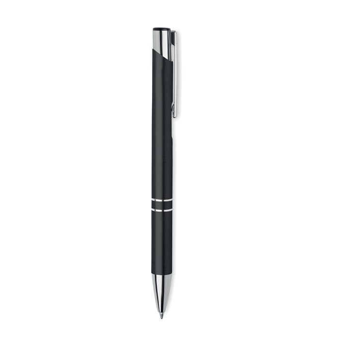 Push button ball pen in recycled aluminium. Blue ink.
