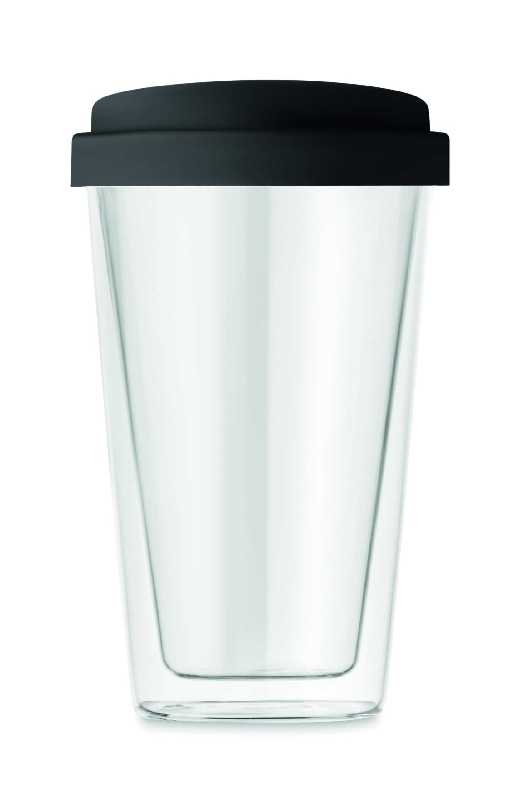 Double wall high borosilicate glass with silicone lid. Capacity 350ml