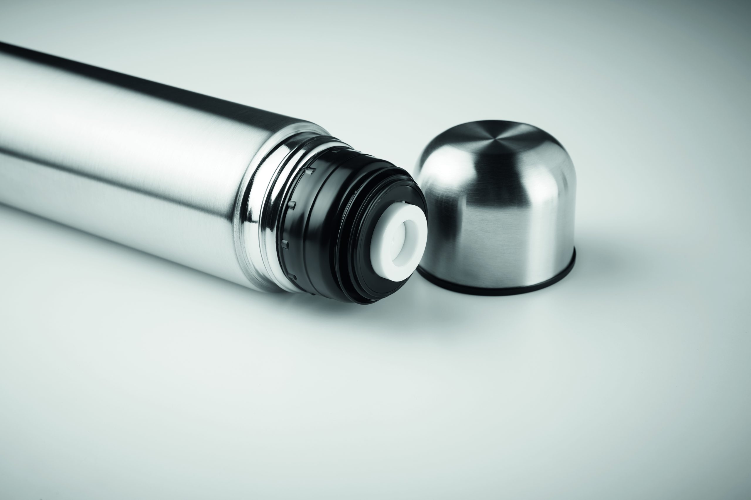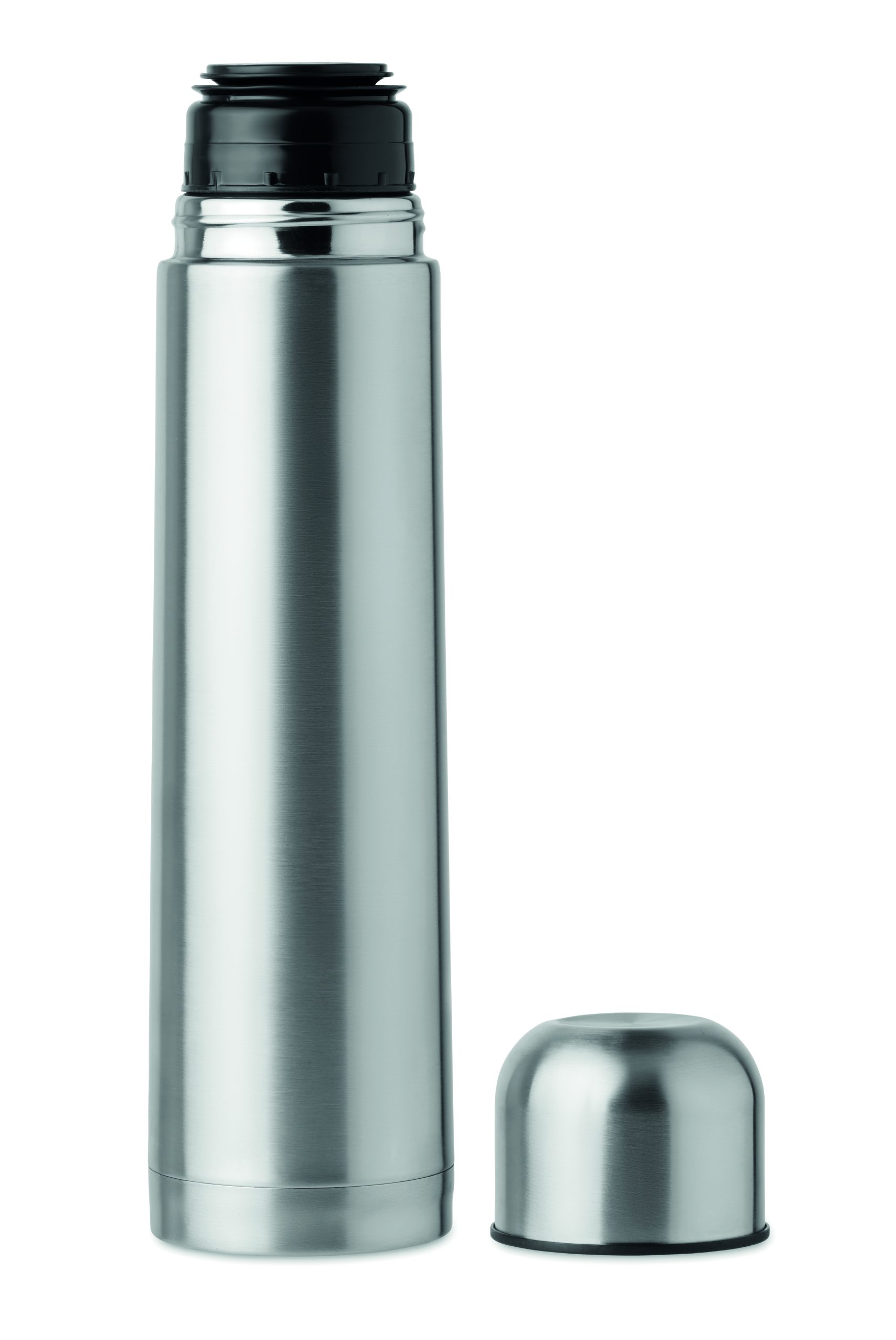 Double wall stainless Steel insulating vacuum flask. Capacity: 900 ml. Leak free.