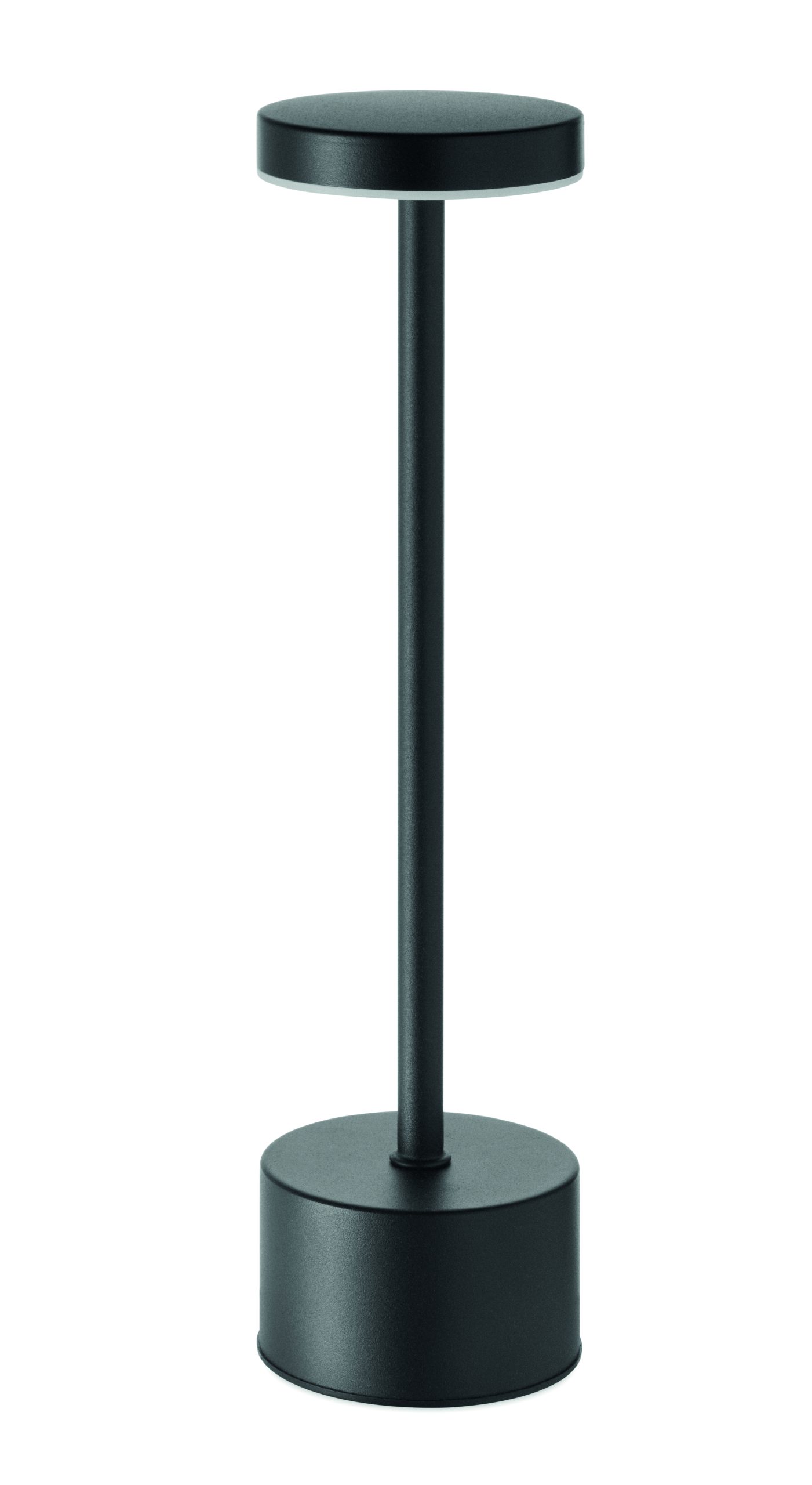 Aluminium table lamp with 24 LEDs, 3 light modes and touch control. Features stepless dimming and 1200mAh rechargeable Li-Ion battery with 6hr use.