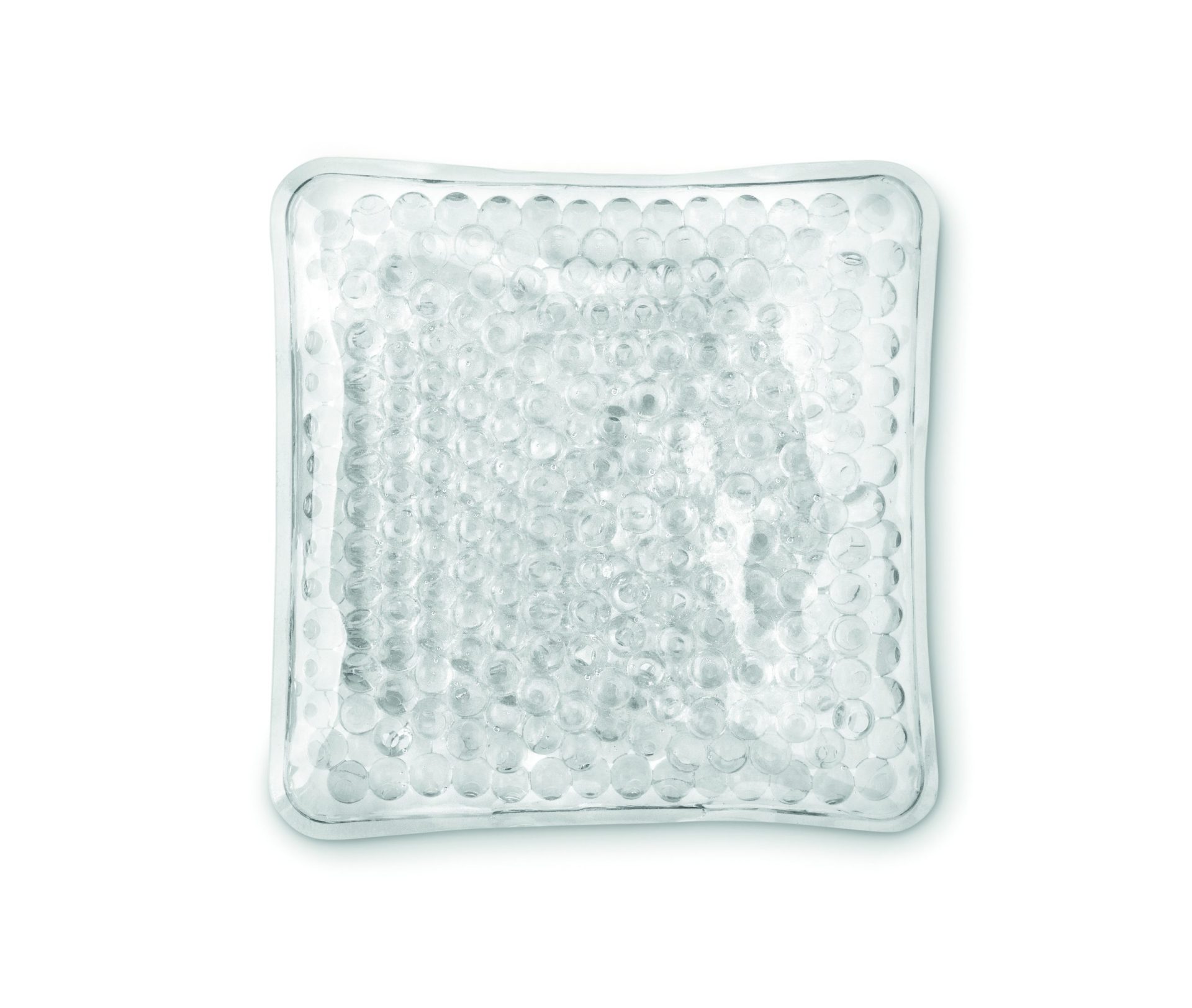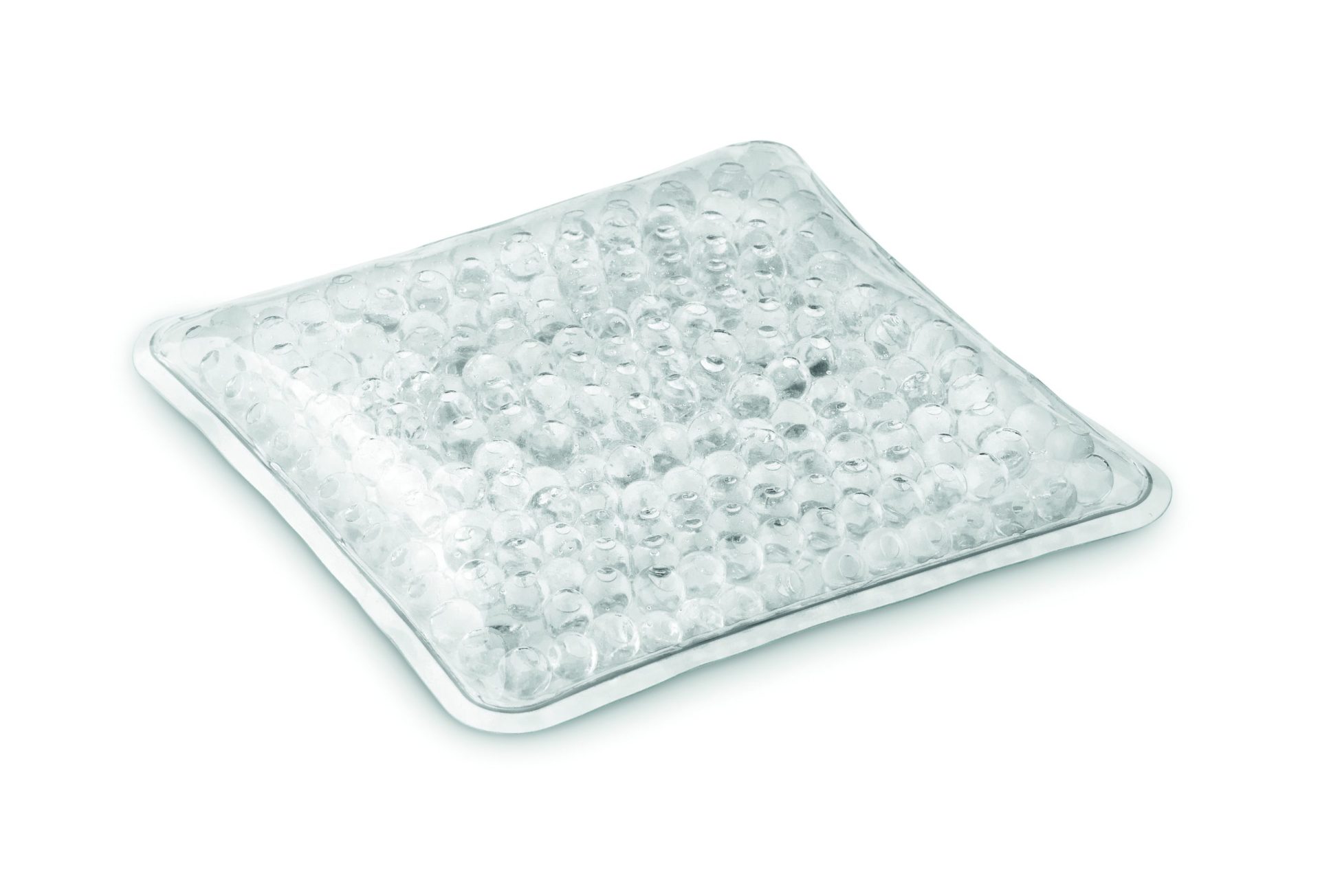Hot and cold pack with gel beads inside in PVC transparent bag.