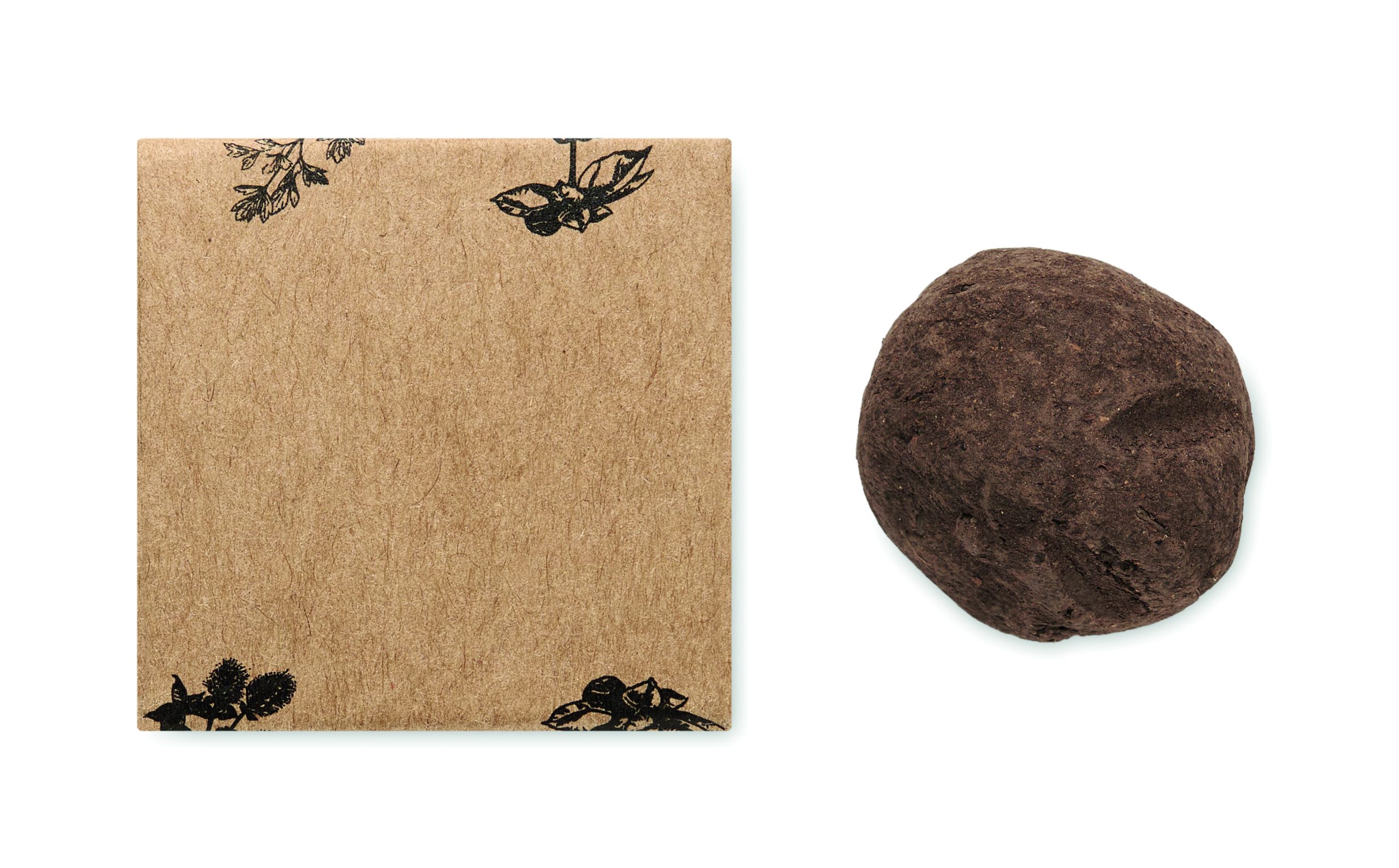 Bomb seed growing kit presented in carton box. Including anise, artemisia vulgaris, dill, fennel, chamomile and cow parsley seeds. Made in EU.