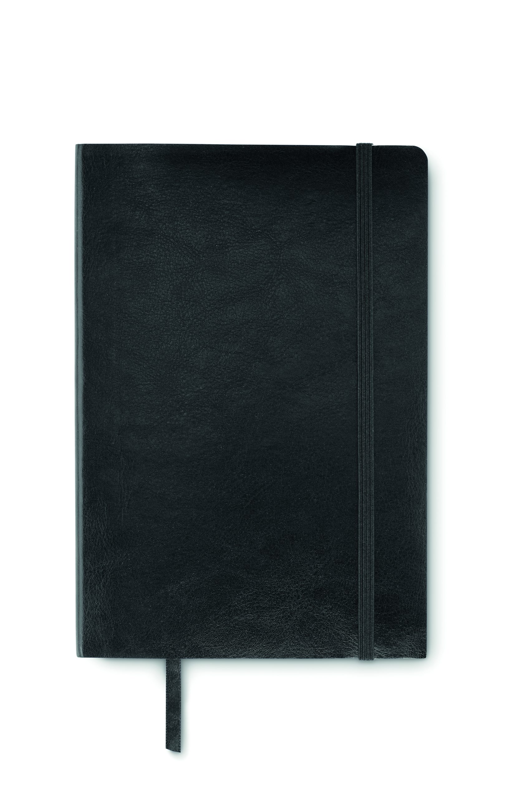 A5 notebook with soft recycled PU (81% recycled polyester and 19% PU) cover. Casebound. 160 lined pages (80 sheets recycle papers). Matching elastic closure strap and ribbon bookmark. Expandable inner pocket in the back. FSC®-certified | FSC MIX CREDIT, P7.1, FSC-C213206