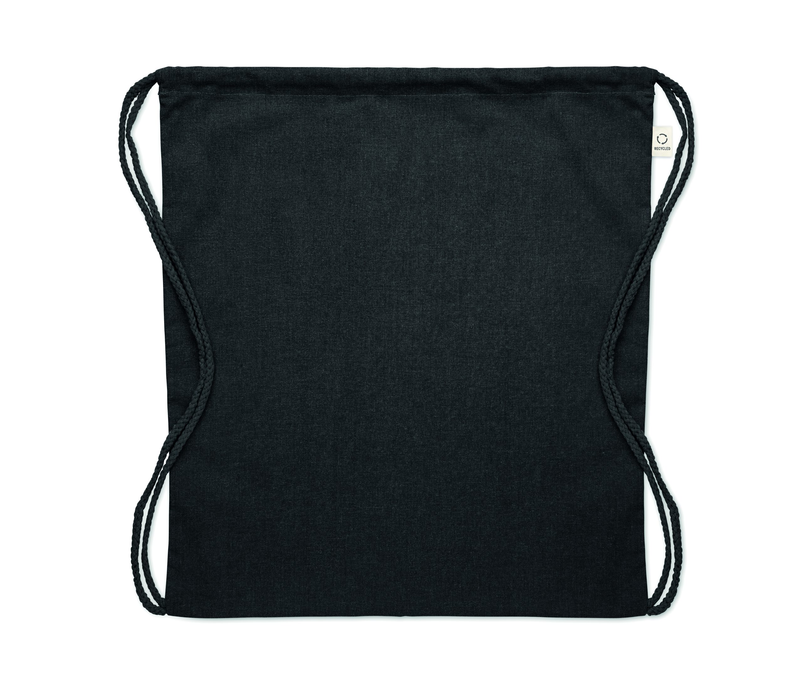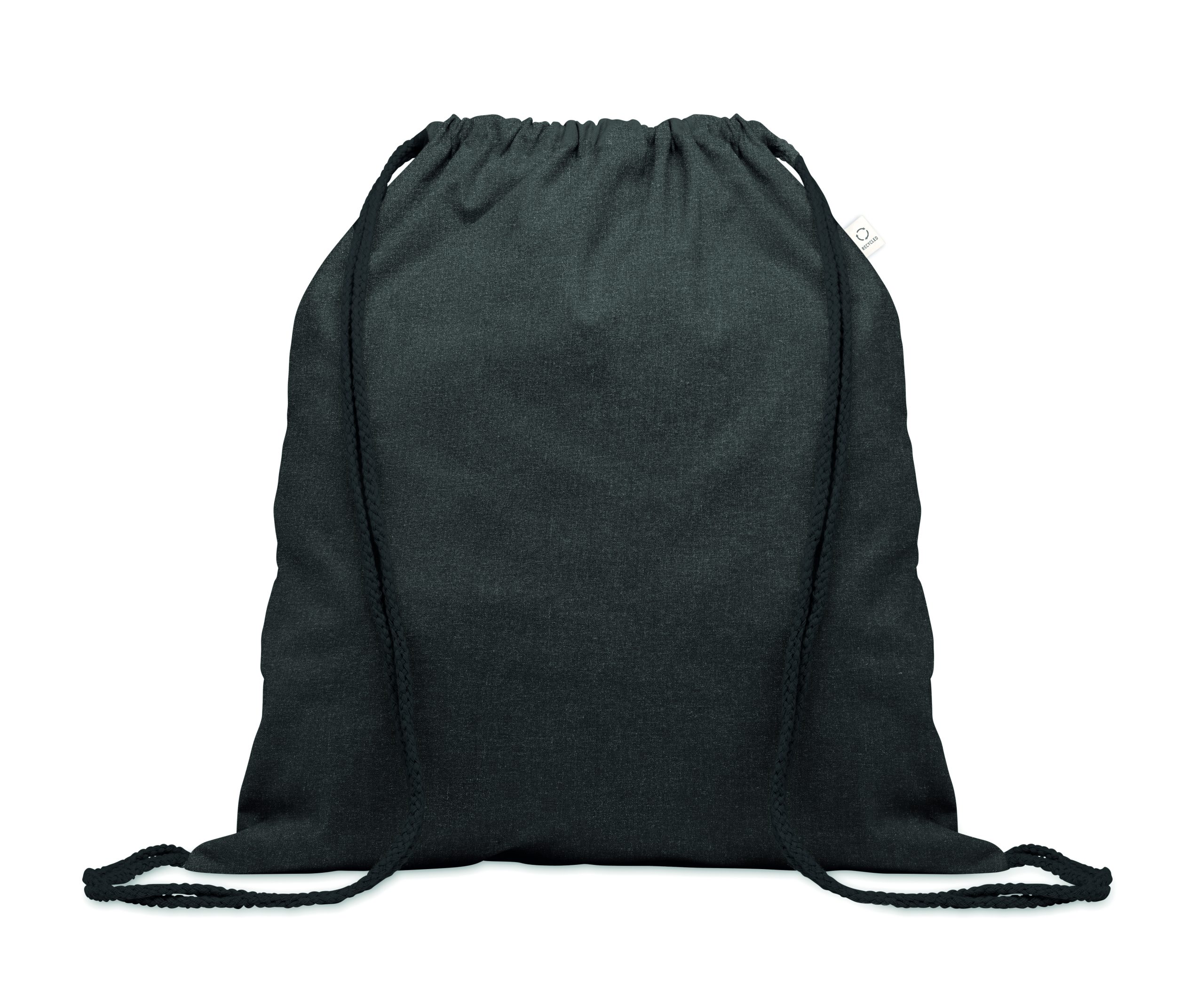 Drawstring bag in recycled pre-consumer cotton (70 %) and RPET (30%) 140 gr/m². This item can shrink after printing.