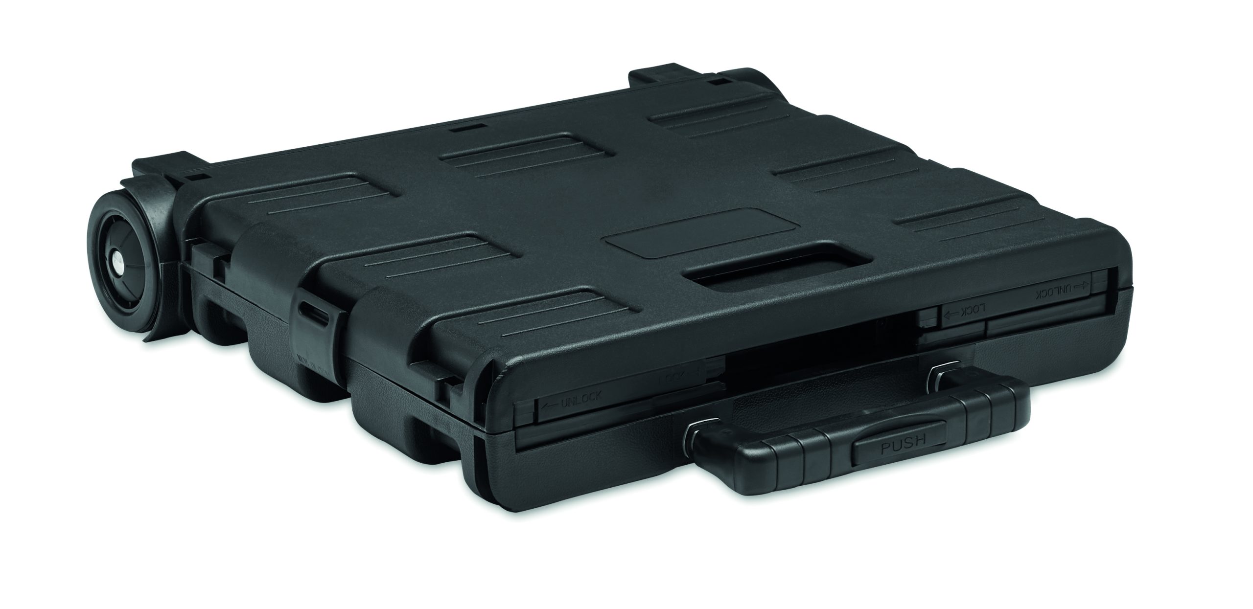 PP folding shopping container trolley with steel handle. Max. load: 25 kg. Capacity: 32 L.