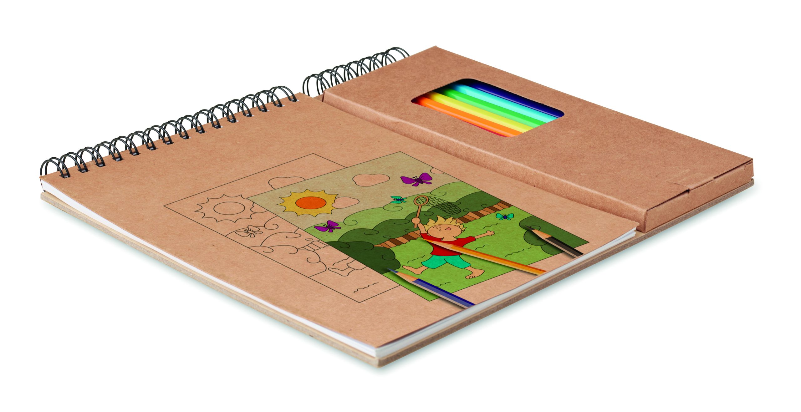 Colouring set with 24 pages 6 of which have pictures to colour in and 18 blank pages. Includes 8 colouring pencils.