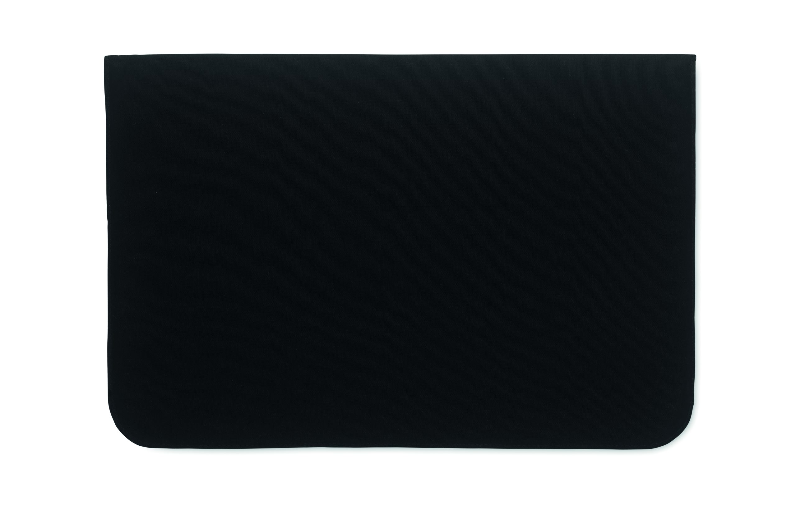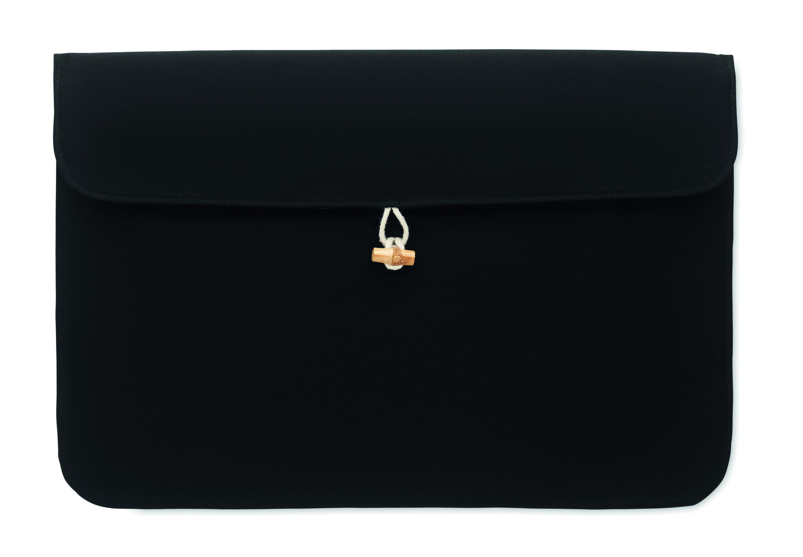 15 inch padded laptop pouch in 220 gr/m² cotton. Inner lining 120 gr/m². Bamboo button closure.