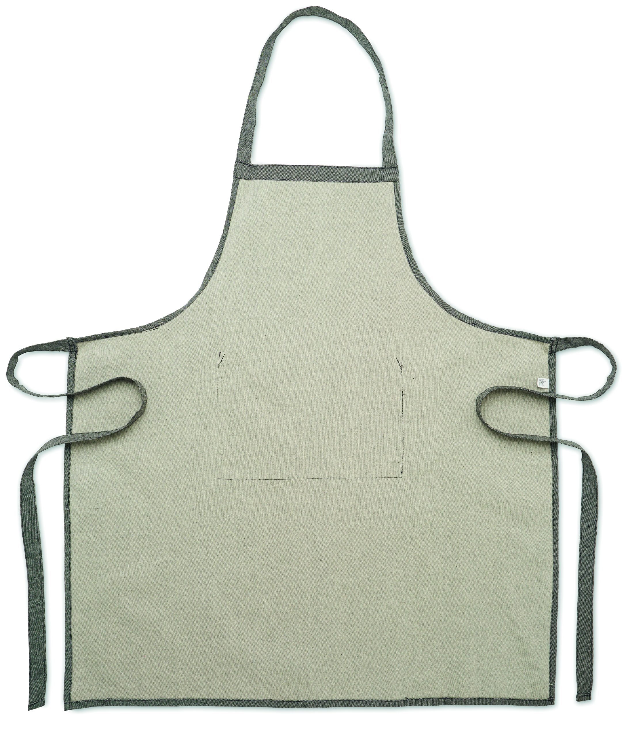 Adjustable kitchen apron with 1 front pocket in 220 gr/m² recycled cotton. 80% recycled cotton, 20% regular cotton.