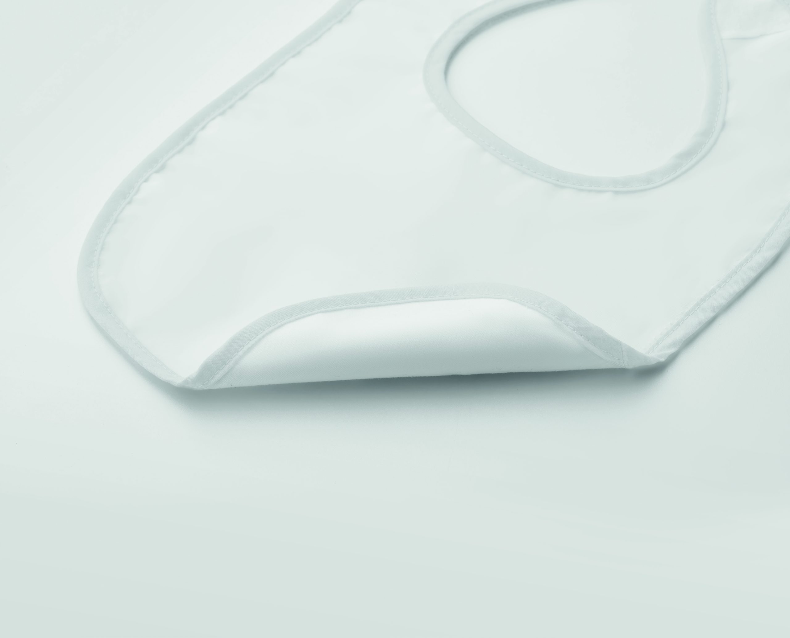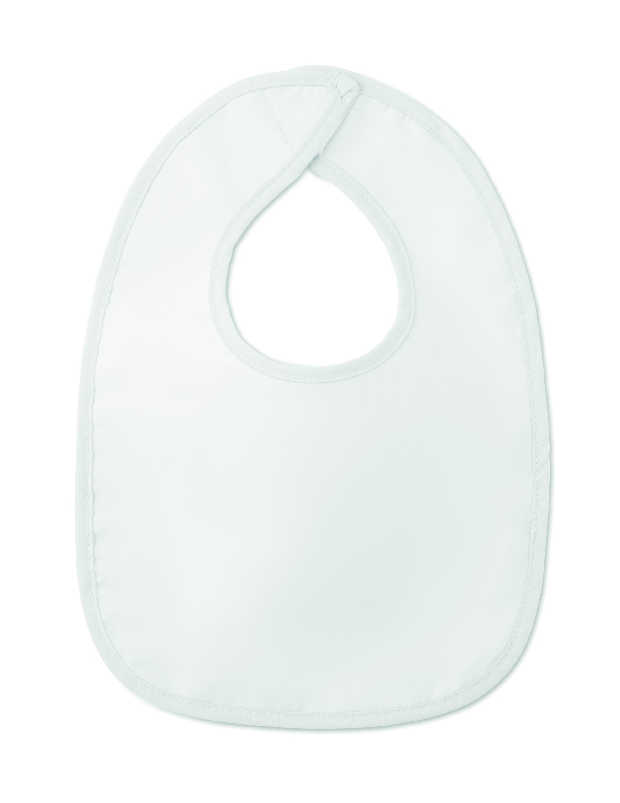 Baby bib in Polycotton and backing in PEVA. Hook and loop closure.