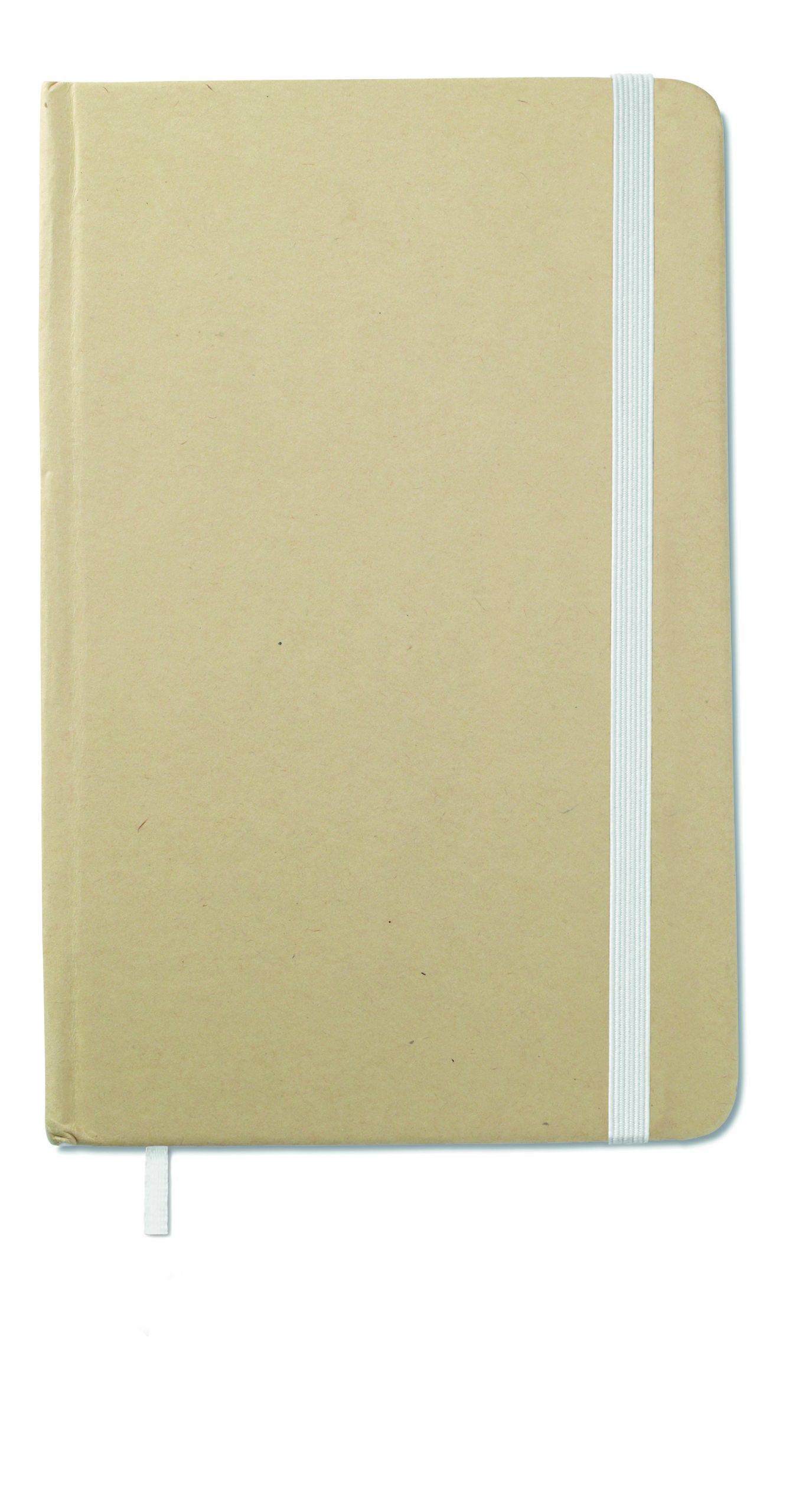 A6 recycled paper hard cover notebook. Casebound. 192 plain recycled paper pages (96 sheets). Elastic closure strap and ribbon bookmark. FSC®-certified | FSC MIX CREDIT, P7.1, FSC-C213206