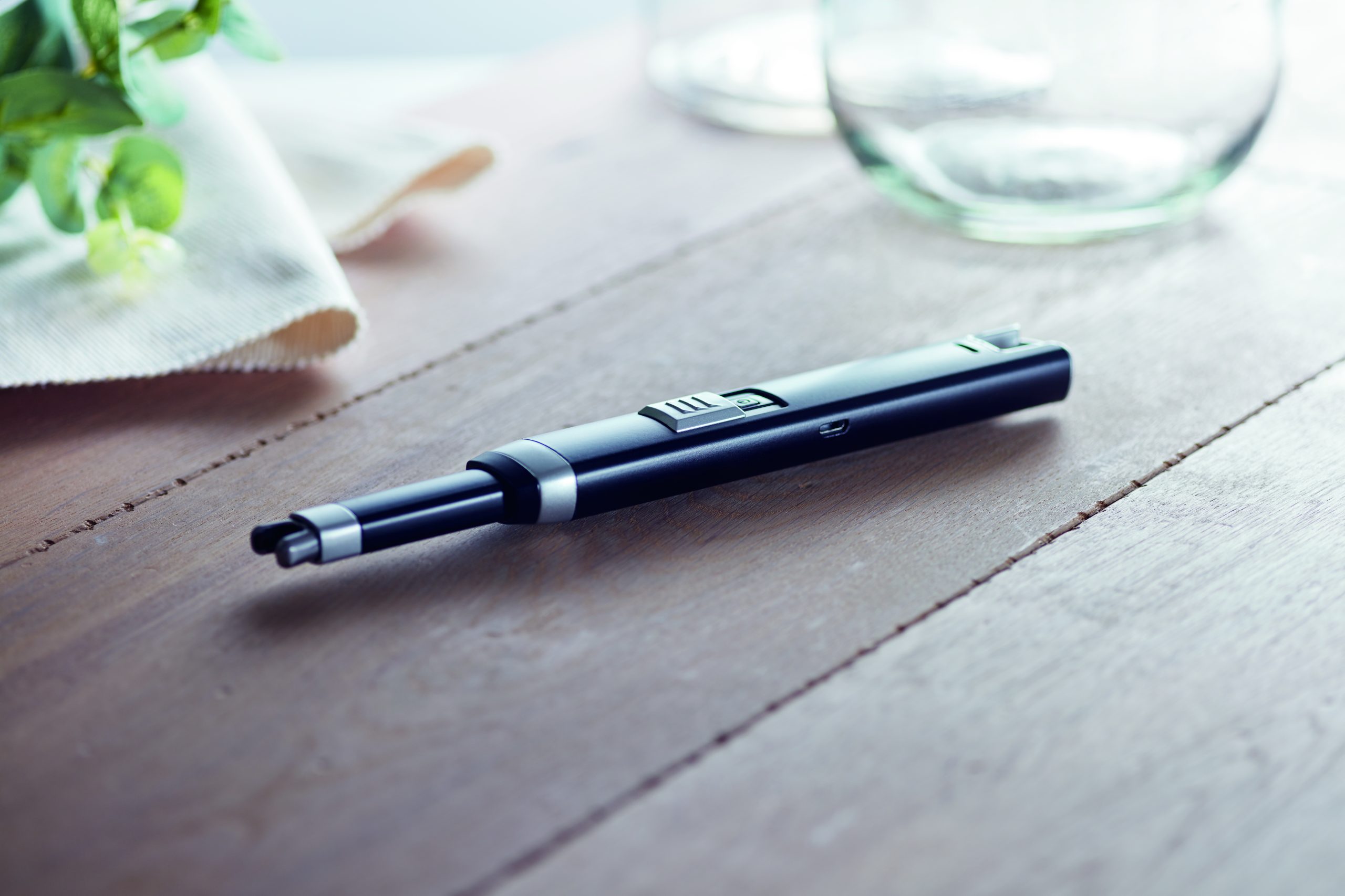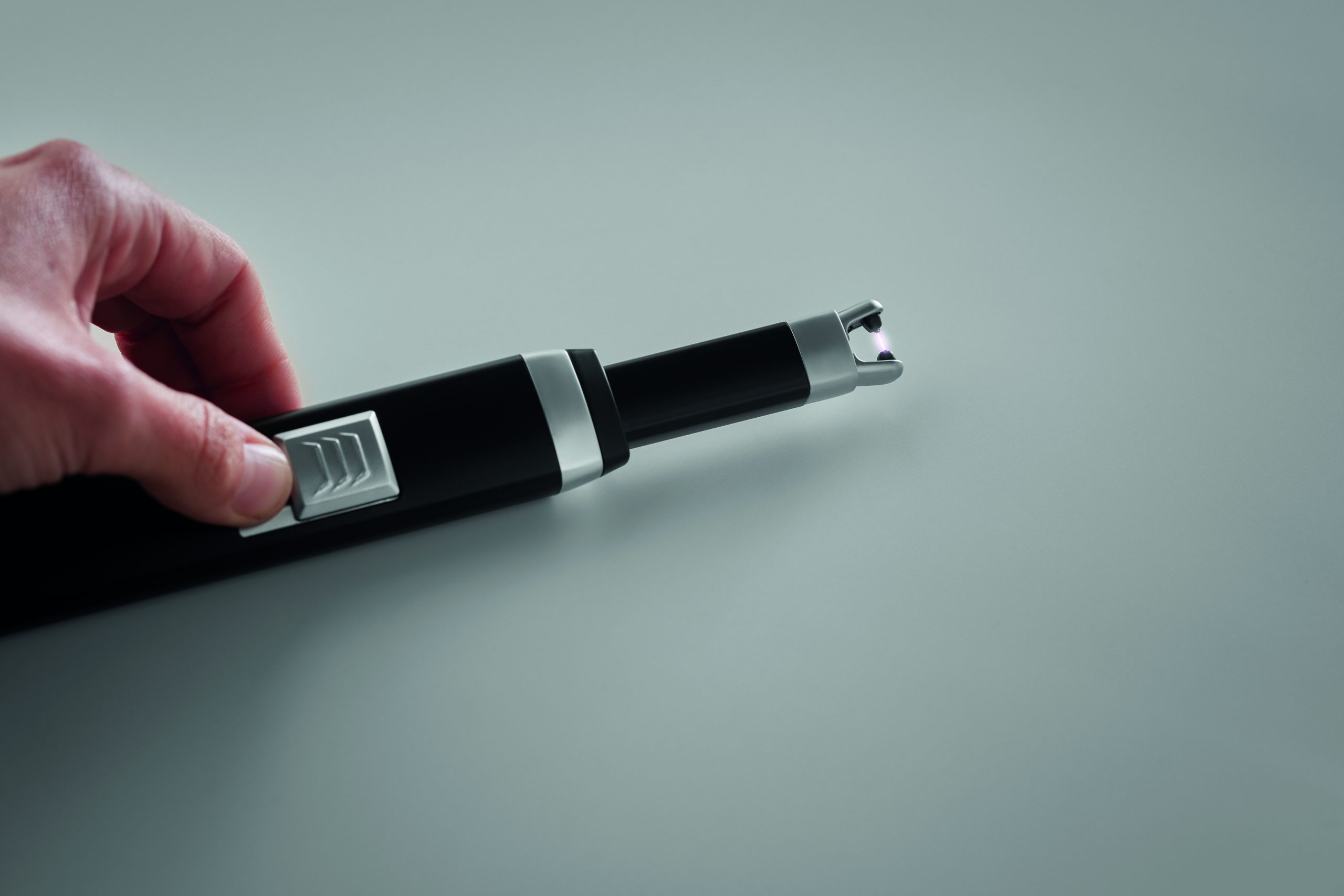 Large USB rechargeable ignitor lighter with single arc flame. Li-Ion 220 mAh battery. Including USB charging cable.