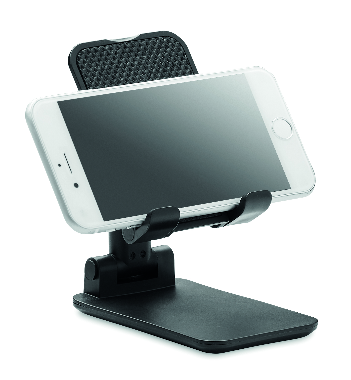 Foldable and extendable desktop phone stand in ABS.
