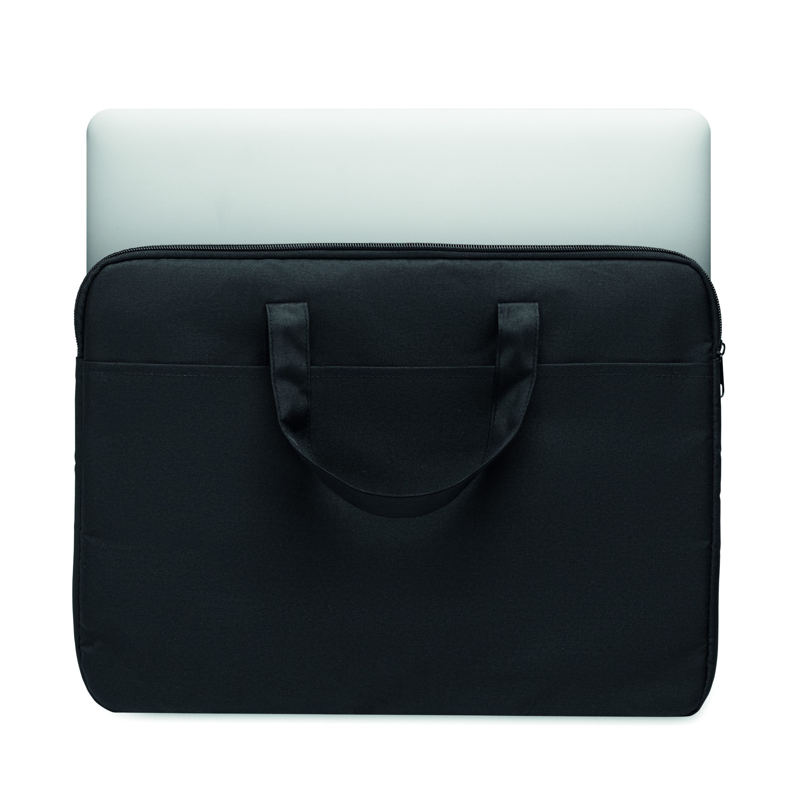 15 inch laptop bag in 300D RPET polyester with handles and luggage pass-through strap.