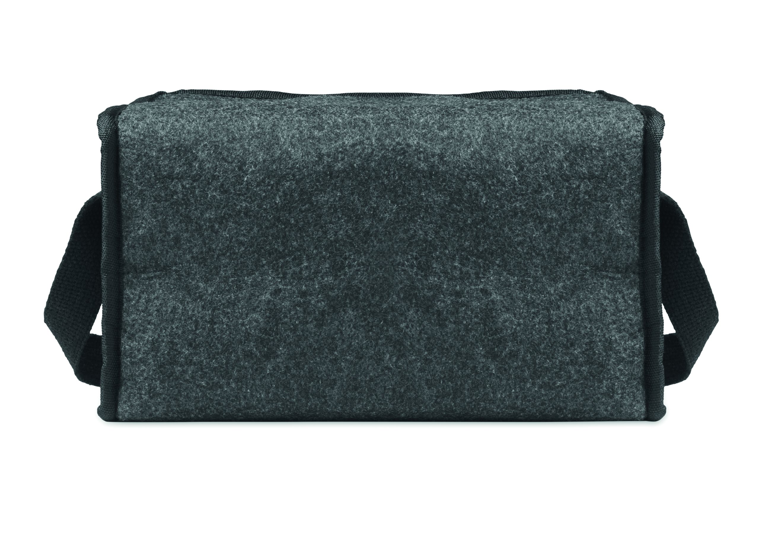 RPET felt cooler bag with front pocket. 1mm RPET felt and 3 mm insulation aluminium laminated foil. Capacity: 5L.