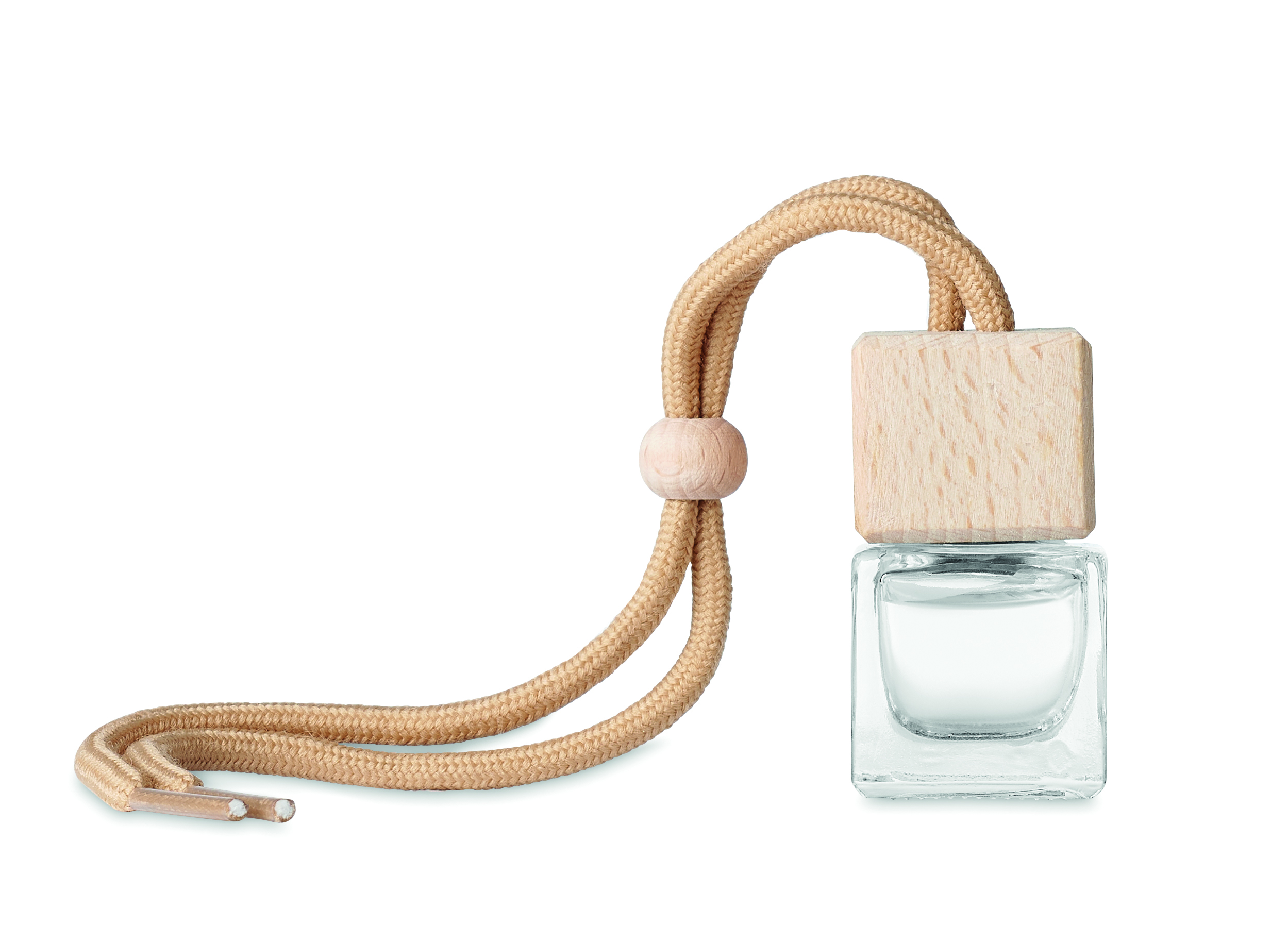 Refillable car air freshener with new car fragrance diffuser with essential oils. Glass container with beech wood lid. Capacity 5 ml.