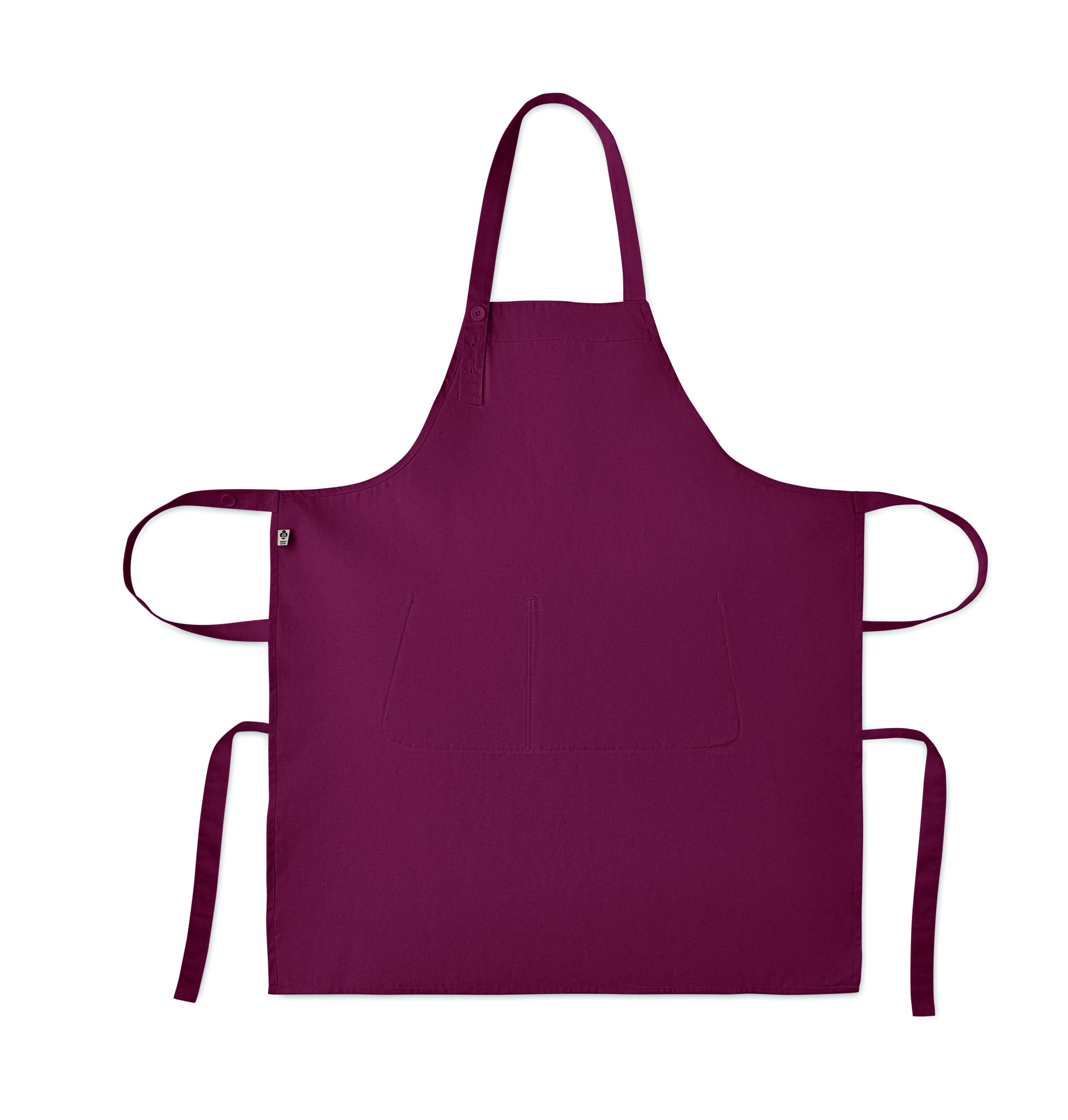 Adjustable bib apron with 1 large front pocket with 2 compartments in 240 gr/m² organic cotton. With adjustable button on the neck strap.