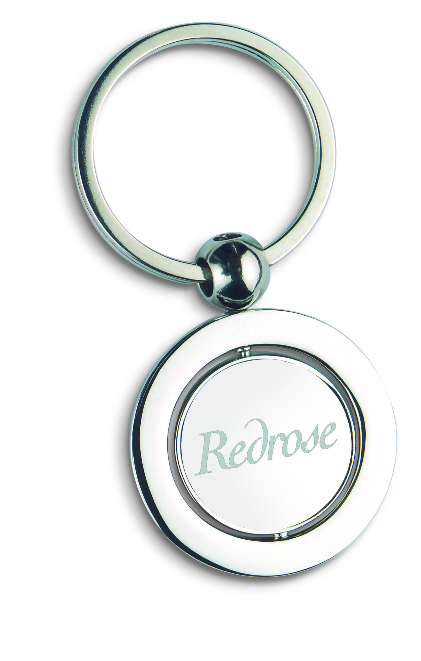 Metal key ring with globe decoration inside. Individually packed in a carton gift box.