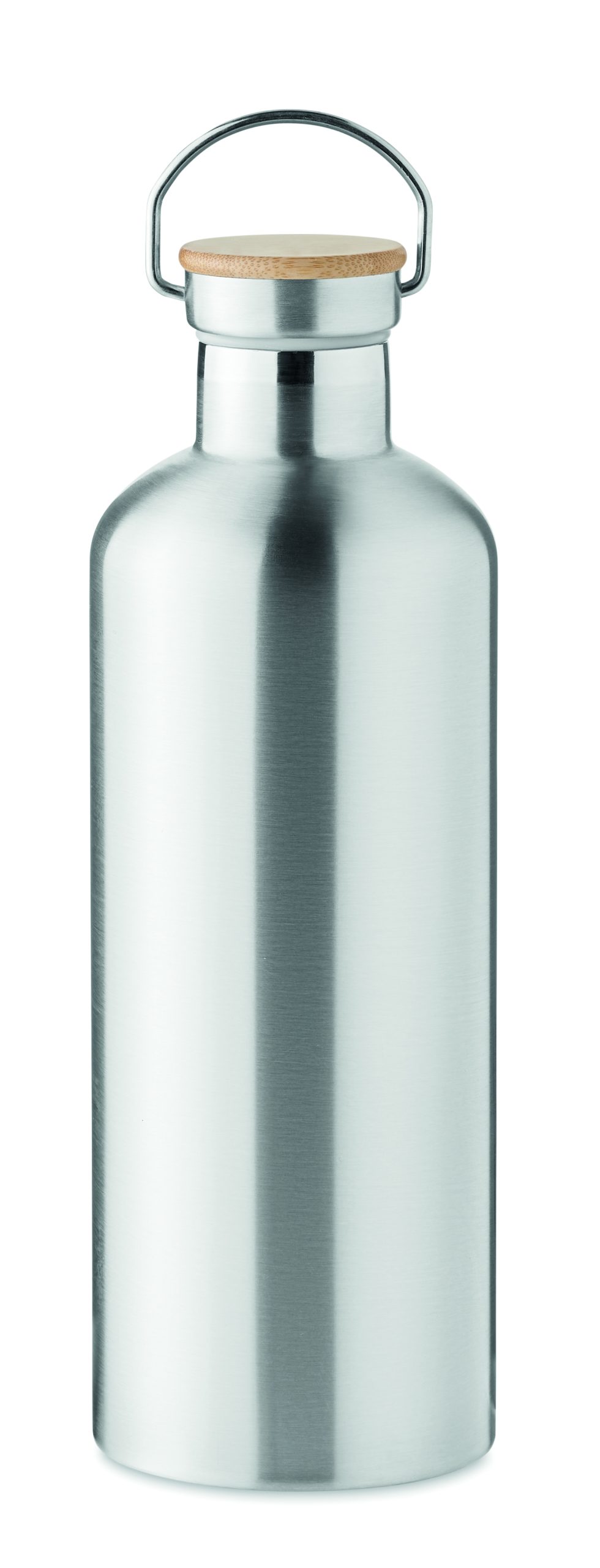 Double wall stainless steel insulating vacuum flask with lid in bamboo and carry handle. Capacity: 1500 ml. Leak free. Bamboo is a natural product, there may be slight variations in colour and size per item, which can affect the final decoration outcome.