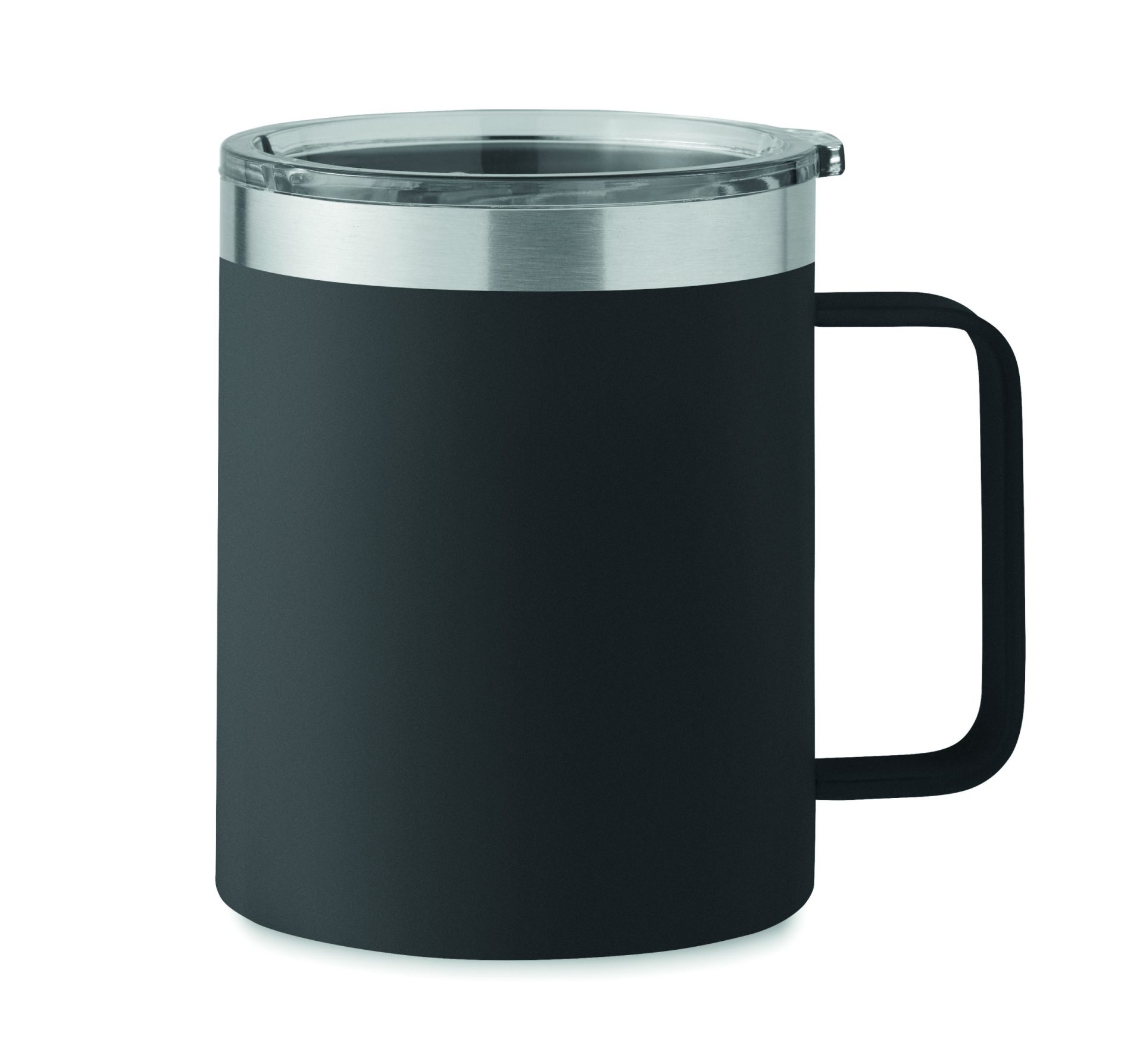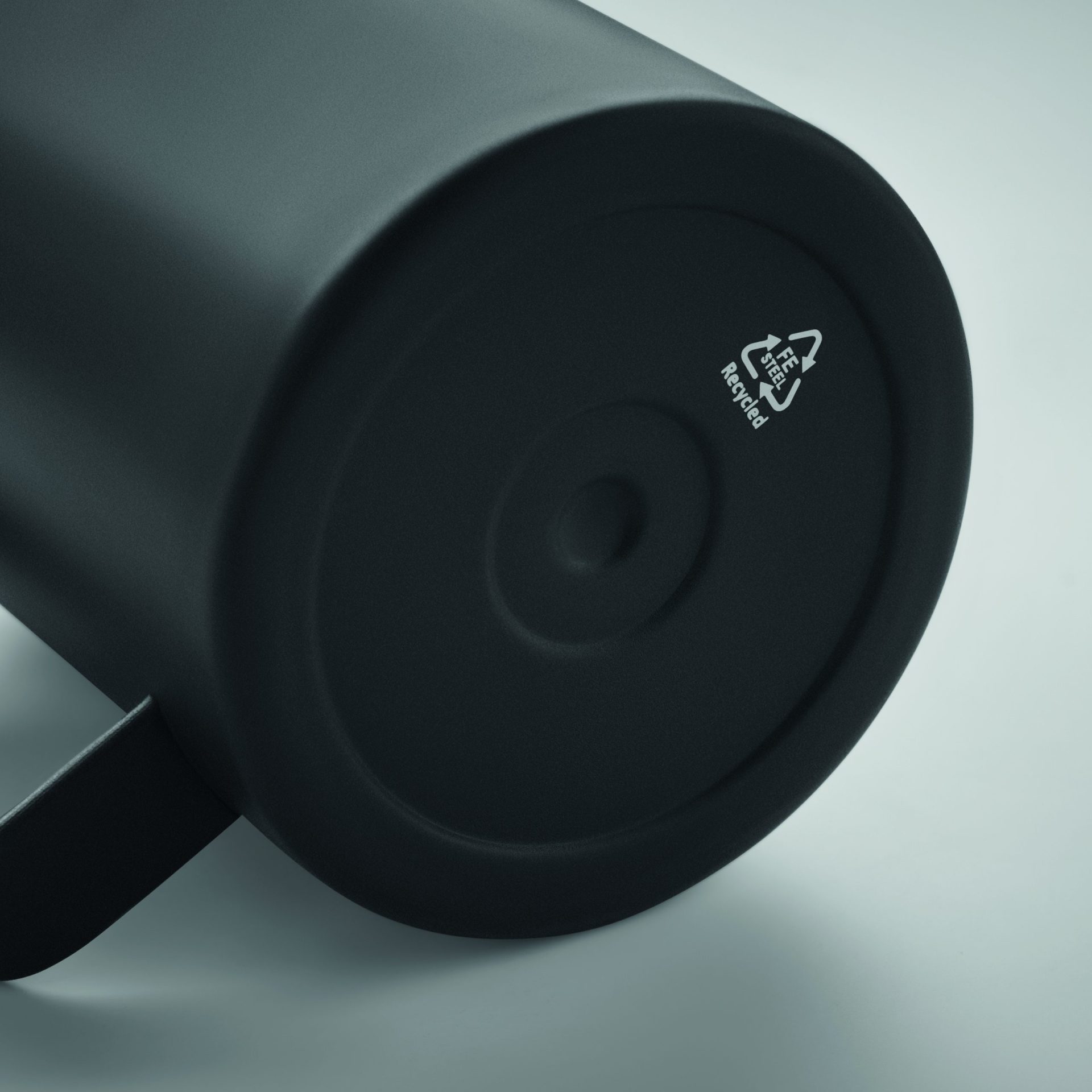 Double wall recycled stainless steel (90% recycled stainless and 10% stainless steel) mug with sliding sip hole cover. Capacity: 300 ml.