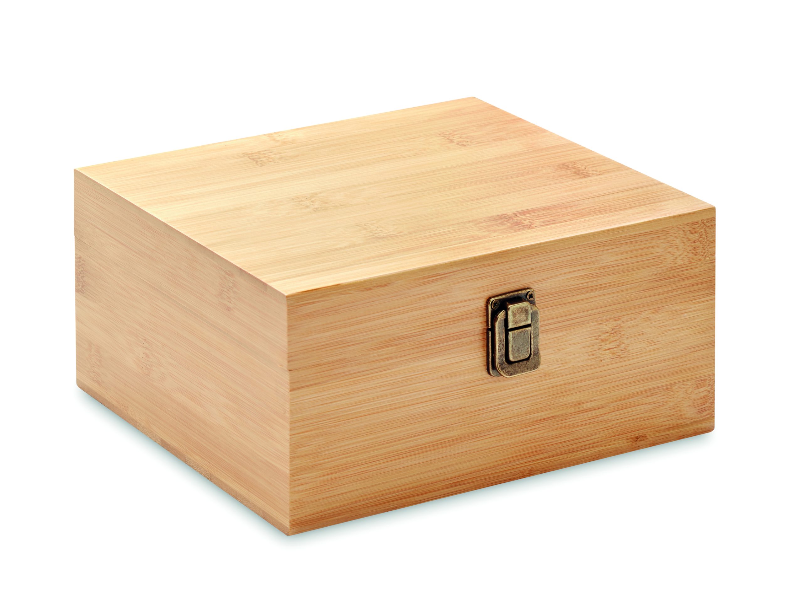 Luxury glass set in bamboo gift box for whiskey, gin, mojito or other drinks. Includes 2 glasses (300ml), 8 reusable stone ice cubes with storage cotton pouch and tongs. Bamboo is anatural product, there may be slight variations in colour and size per item,which can affect the final decoration outcome.