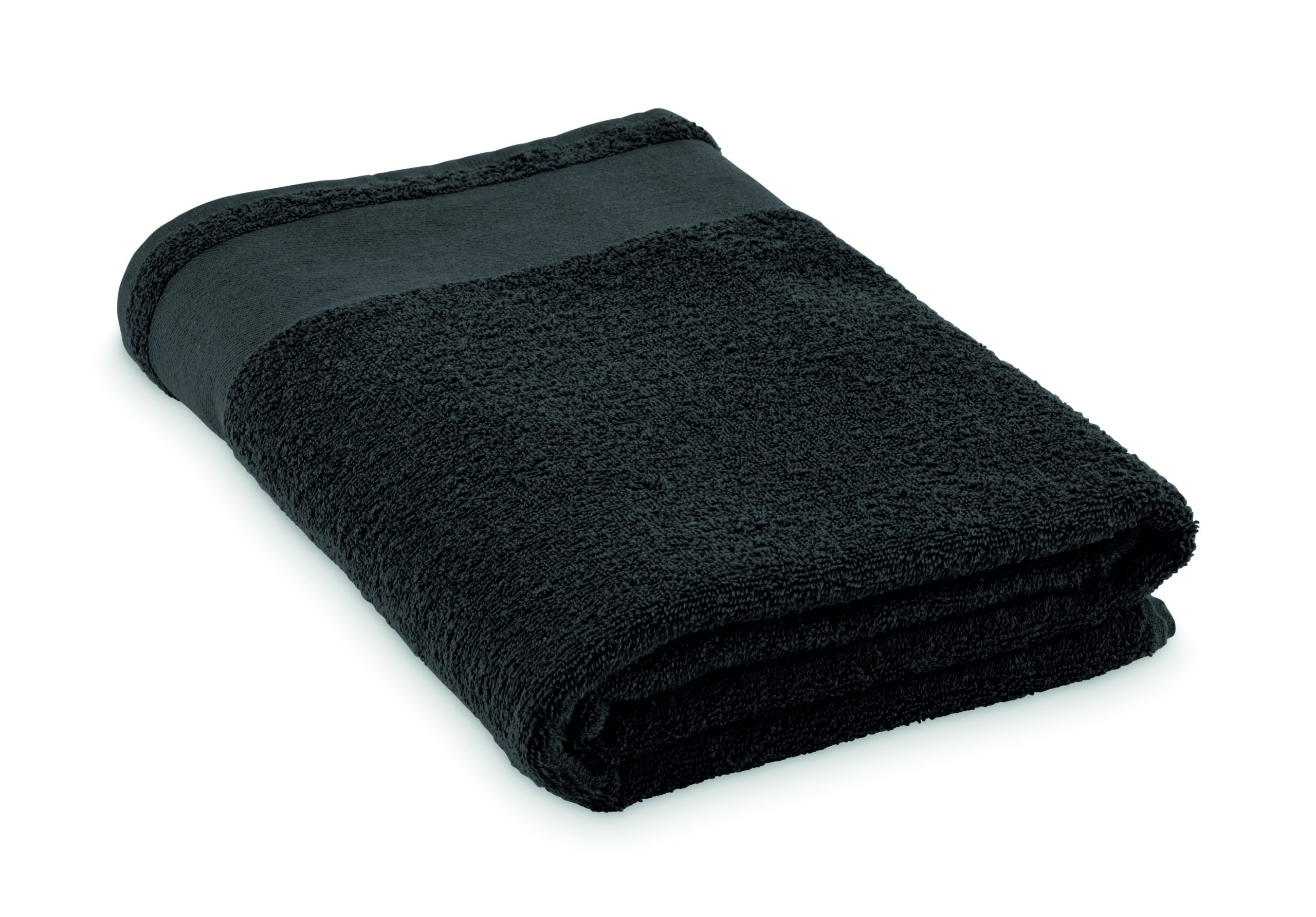 Bath towel made of 100% cotton, 380 gr/m² fabric with cotton hanger loop. Soft and absorbent design. Size 100 cm x 150 cm.