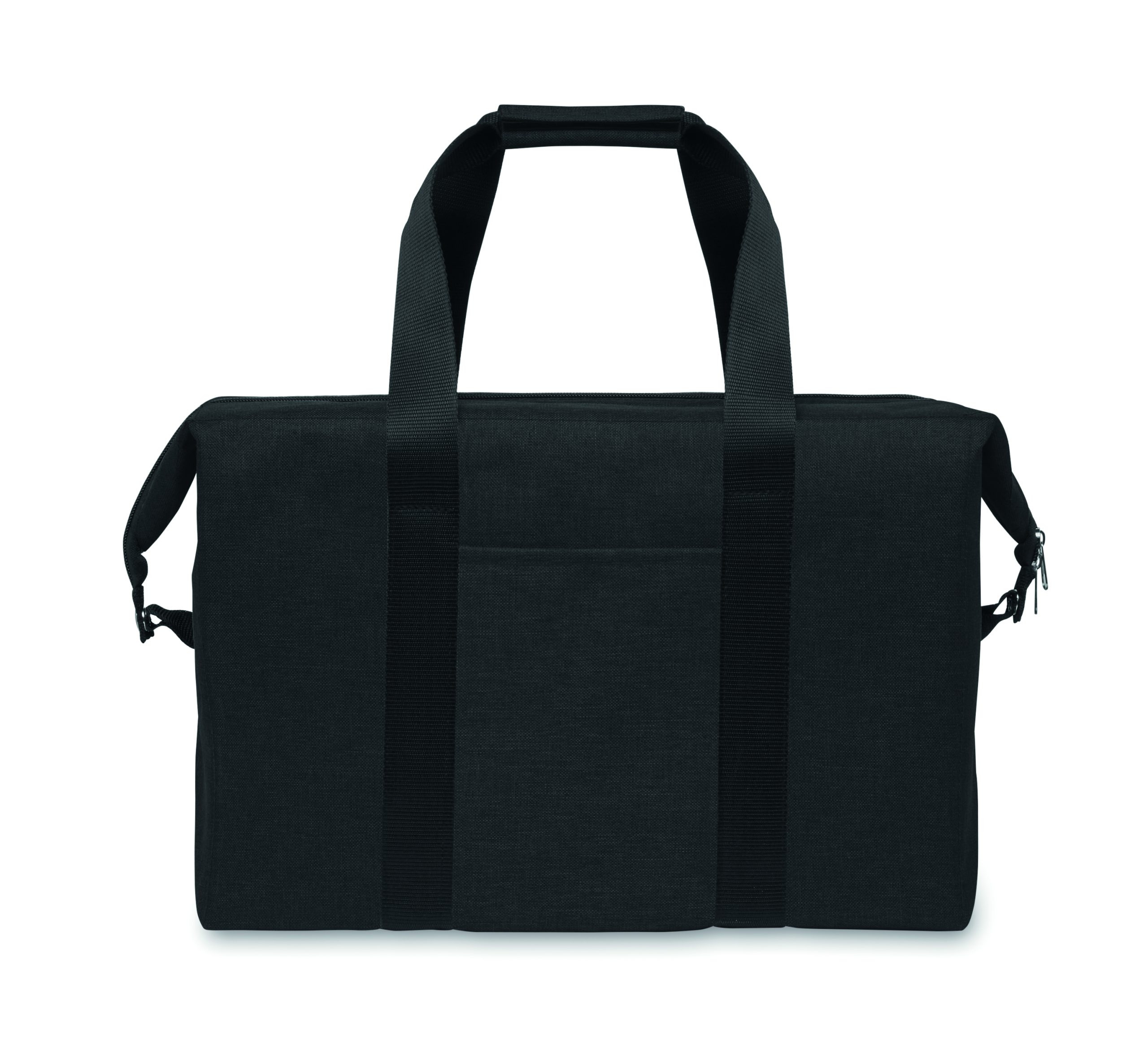 Cooler bag in RPET 300D cationic polyester. Isolation material: 3mm foam laminated with aluminium foil. Capacity 37L.
