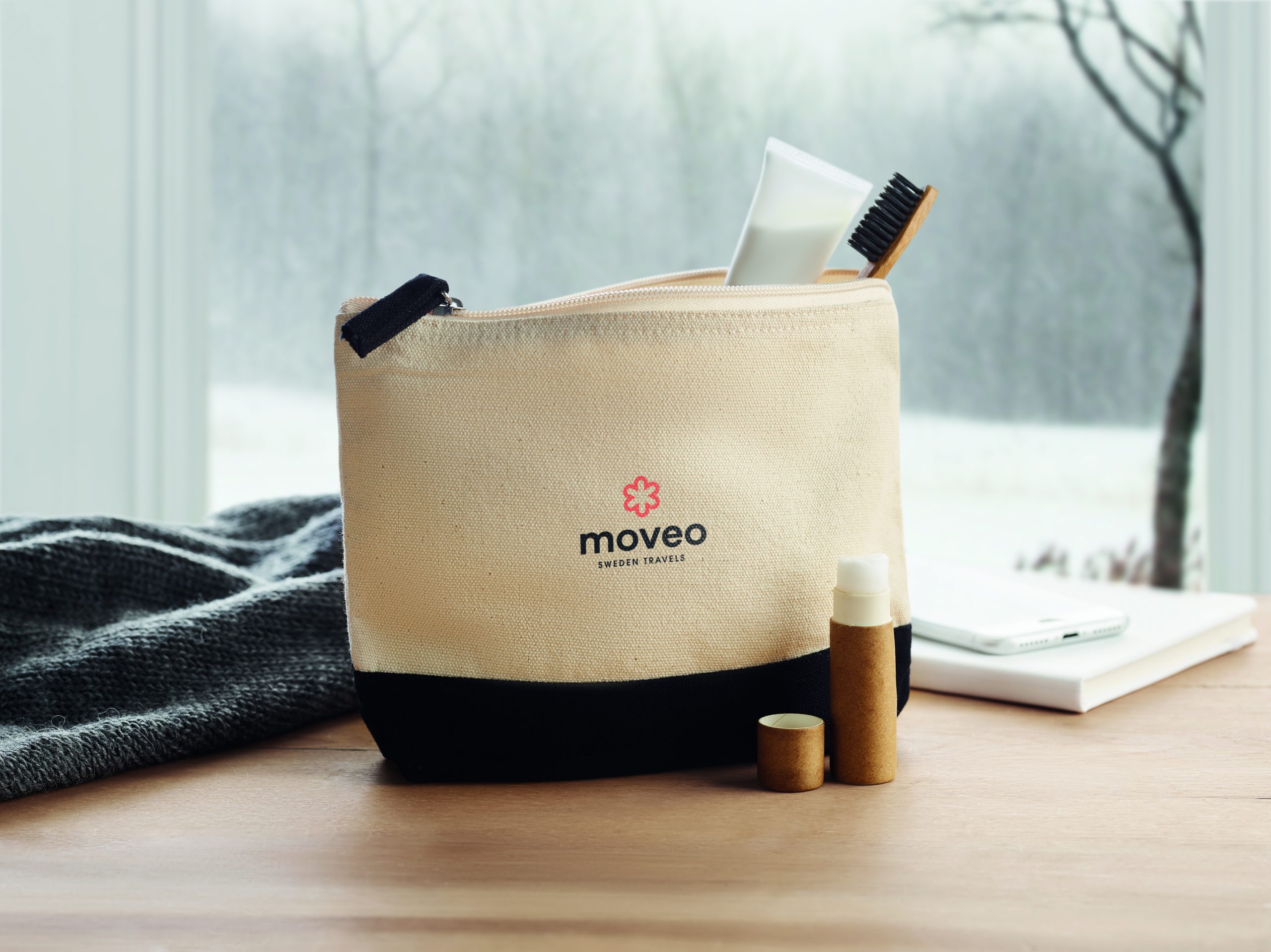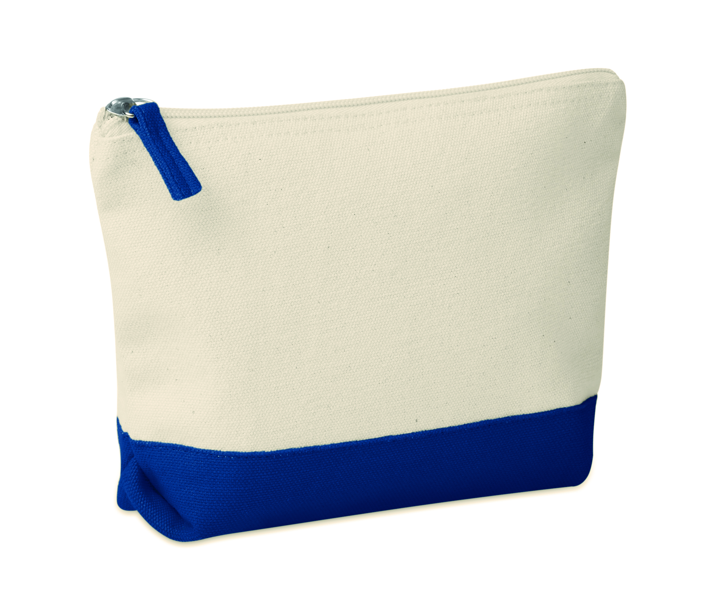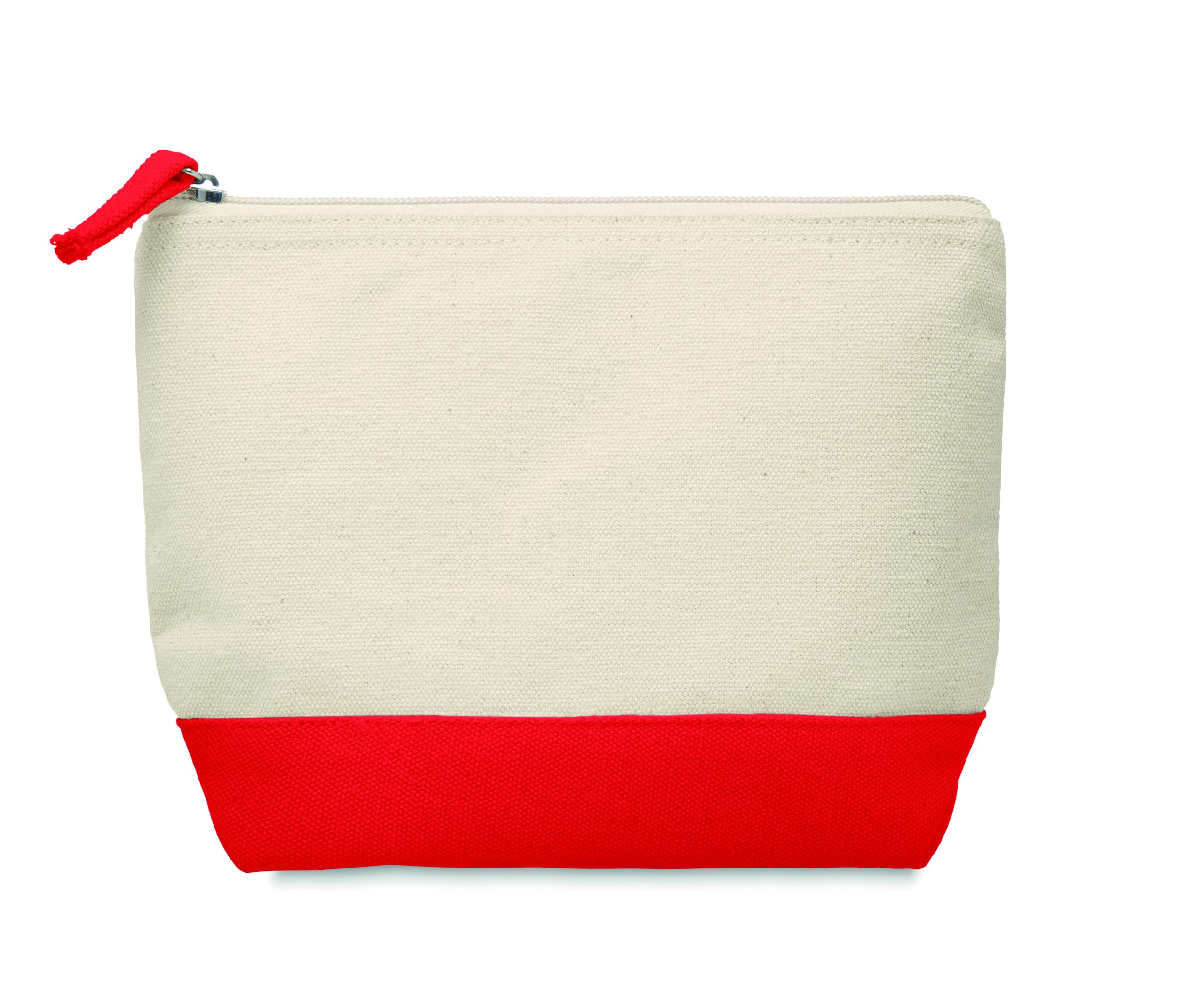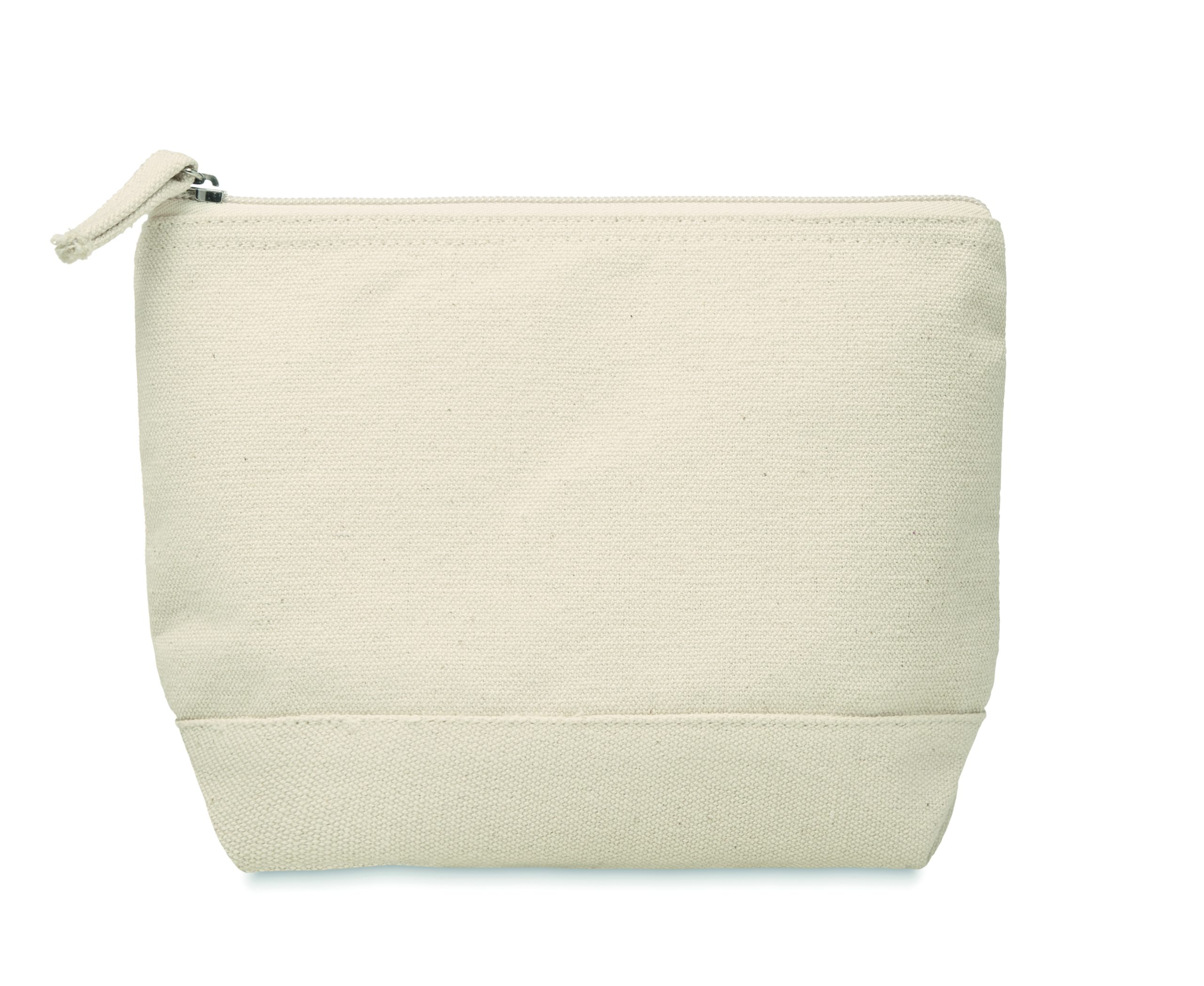 Cosmetic bag in cotton with coloured bottom and matching zipper puller. 340 gr/m².