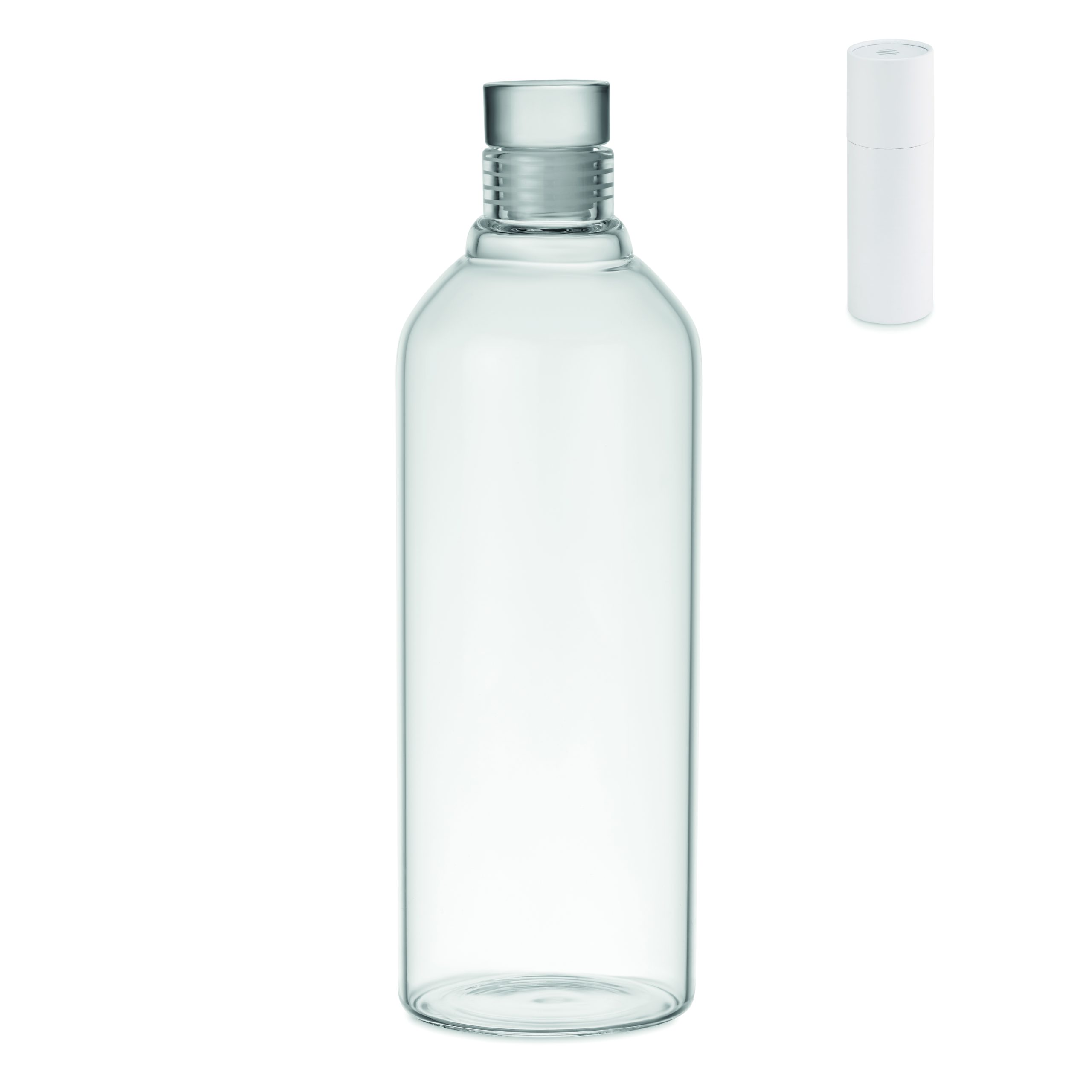 Large Borosilicate glass bottle with a leak free glass stopper. Presented in a tube box. Capacity: 1 L.