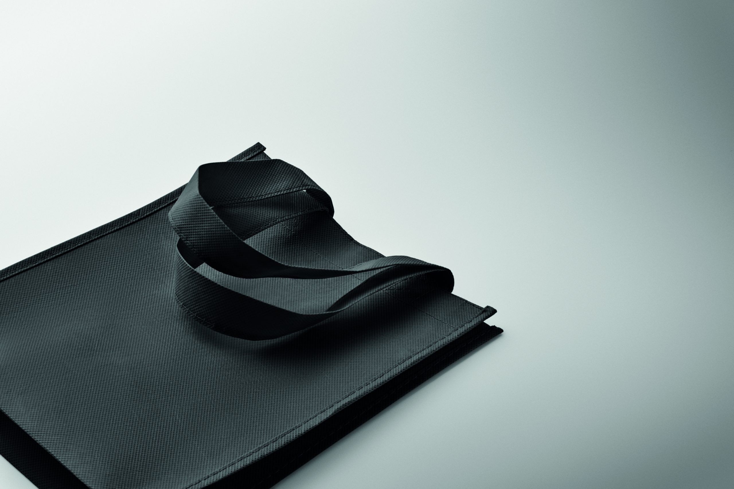 Small gift or goodie bag in RPET non-woven with short handles and gussets. 80 gr/m².