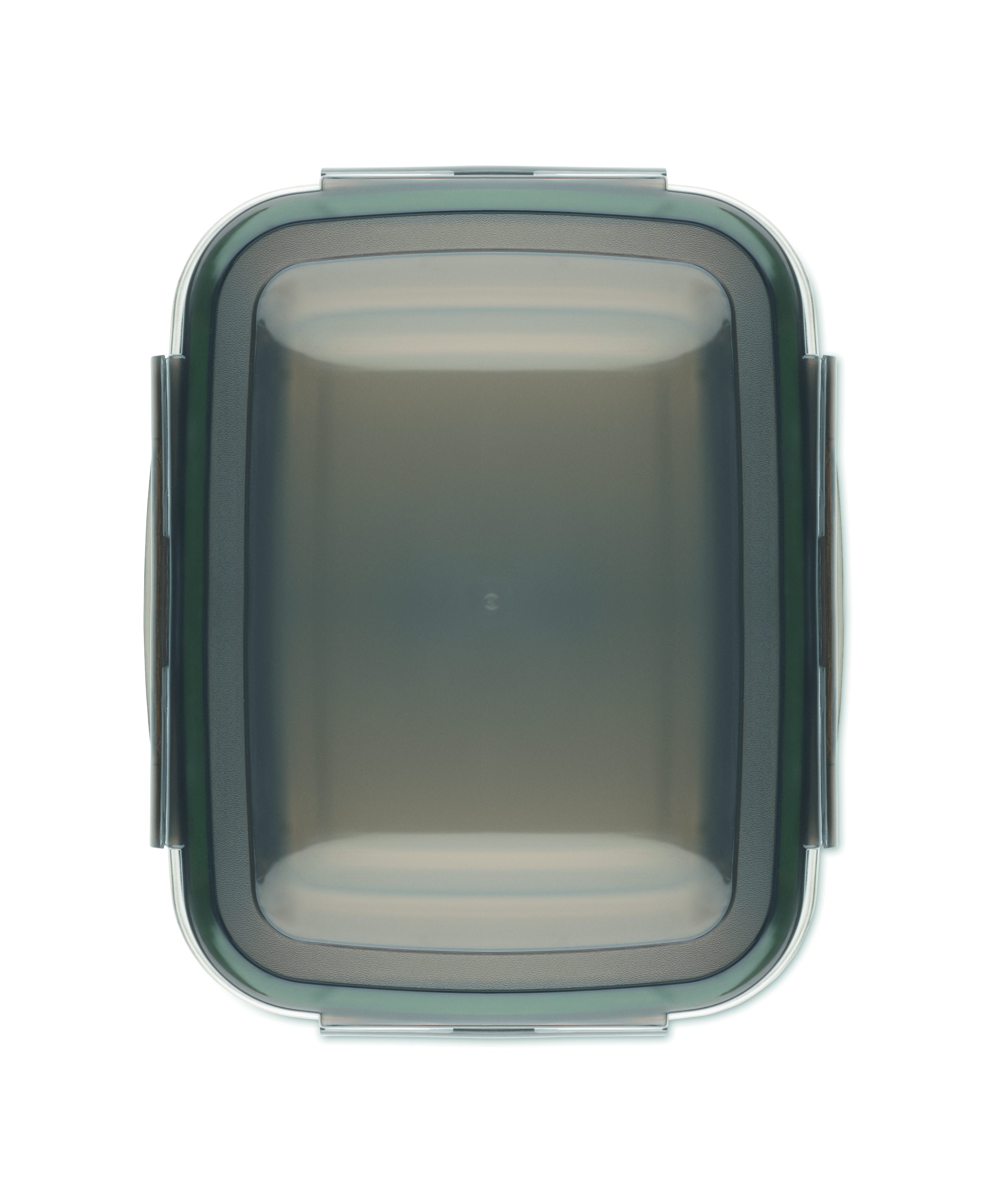 Recycled stainless steel lunch box with PP lid and 4 side clasp closure. Including separator. Capacity: 1500 ml.