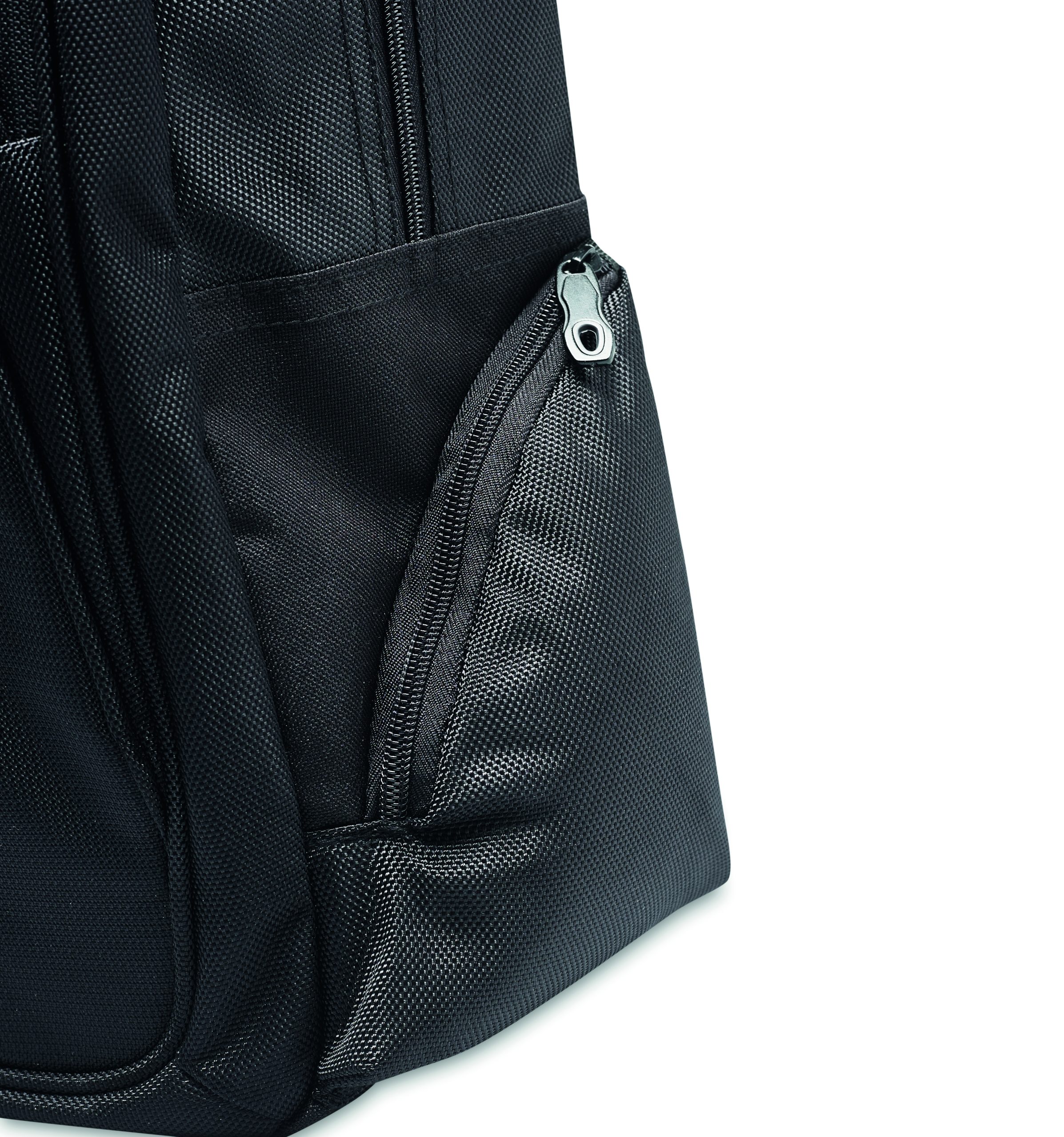 15 inch laptop backpack with compartments. Including several pockets and pen holder. Padded back and shoulder straps. 1680D polyester.