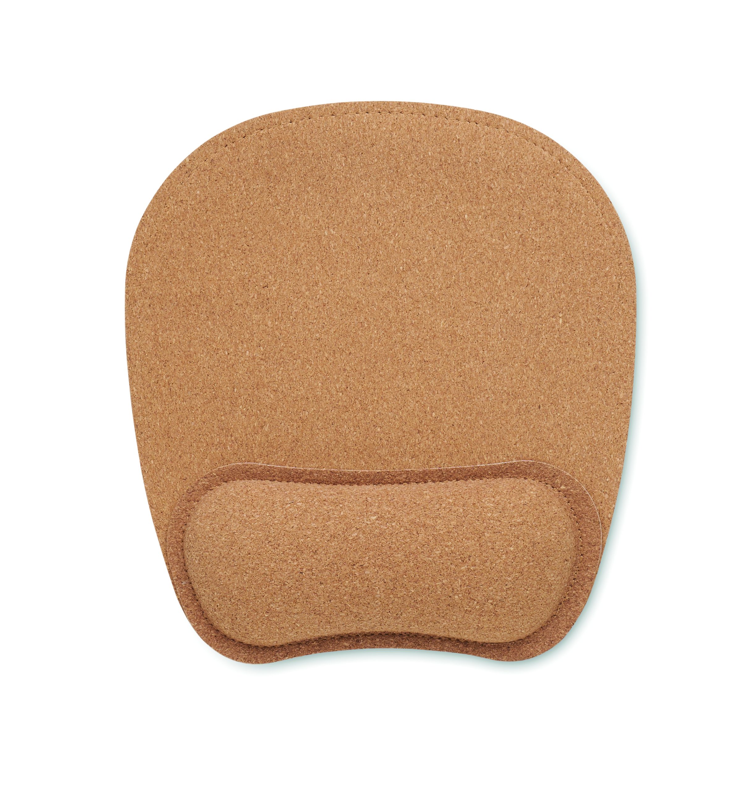 Cork ergonomic mouse mat with wrist support. It has an anti-slip rubber base.