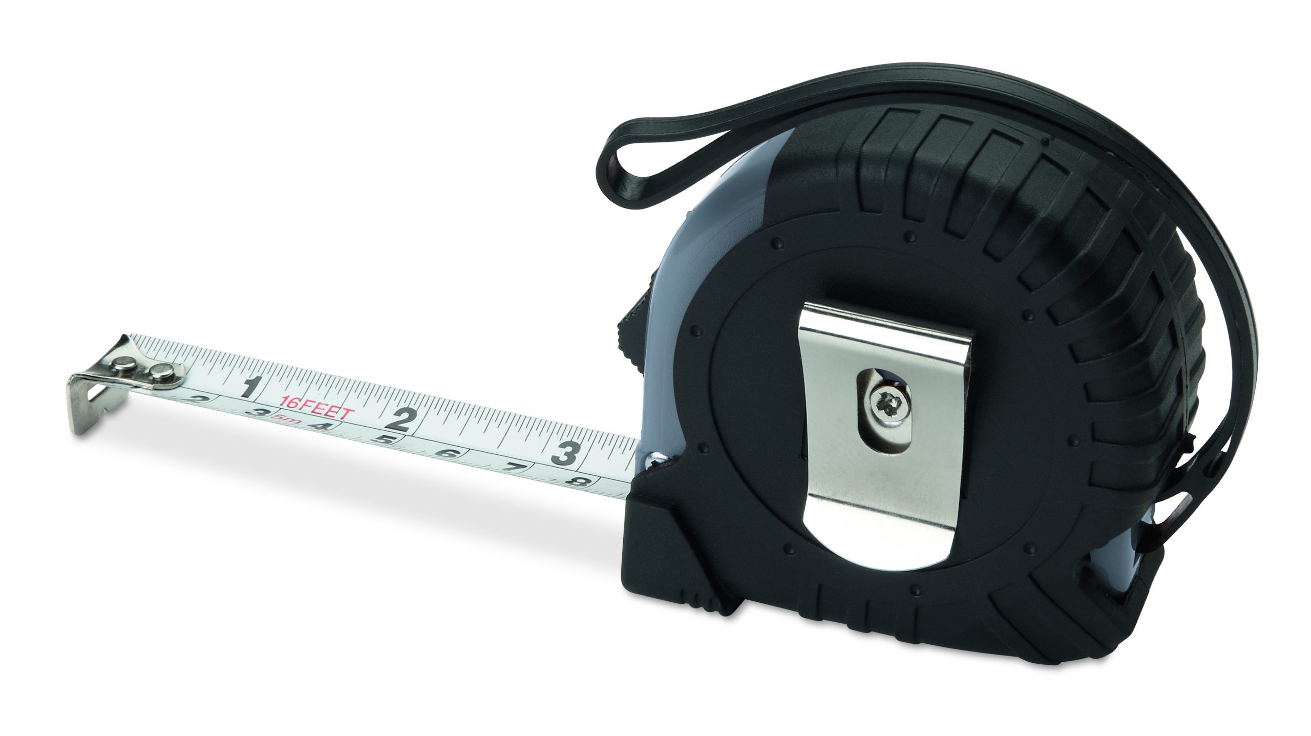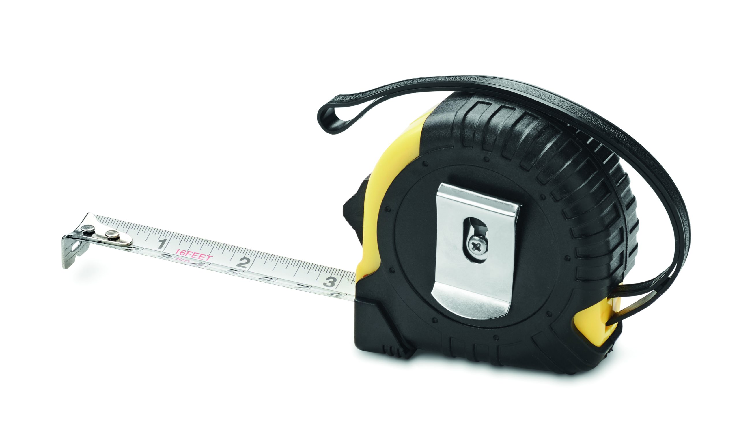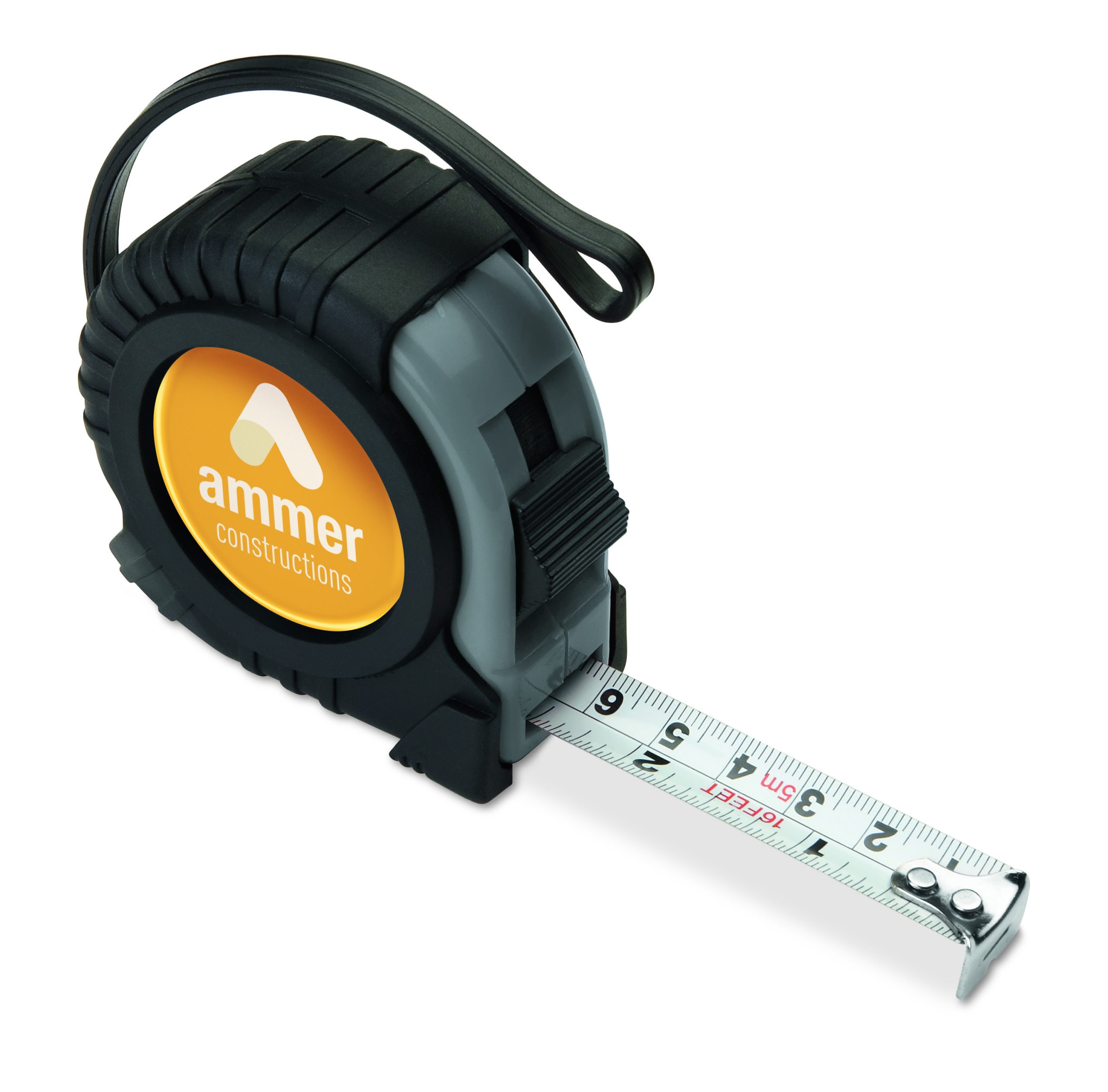 5m ABS measuring tape. Includes hand strap and shiny silver metal clip. (CM/INCH)