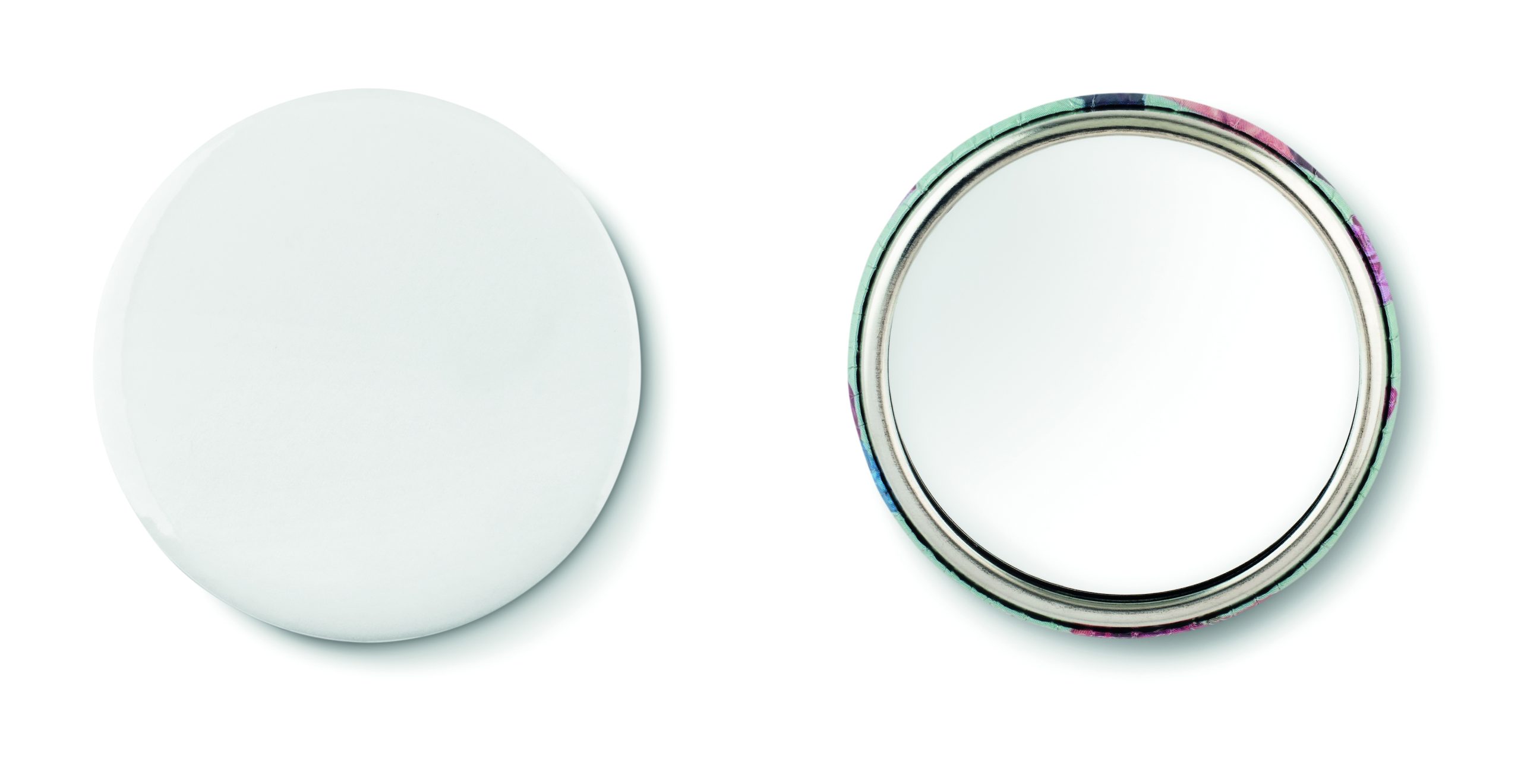 Compact Mirror with paper inlay. Ø5,8 CM. Minimum order quantity 25 pieces. For unprinted orders the item comes unassembled.