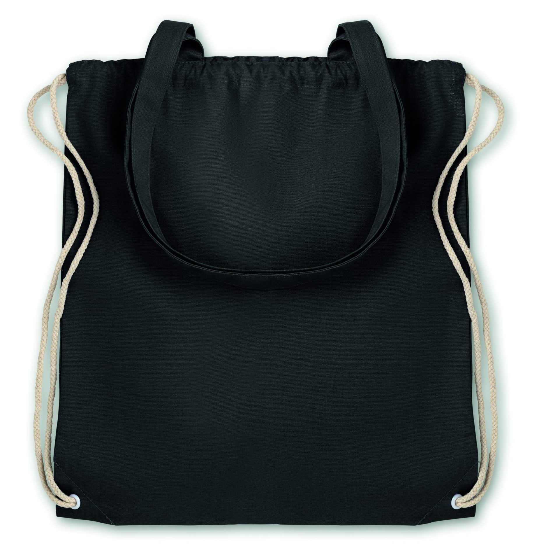 Canvas shopping bag with long handles and drawstring. 220 g/m².