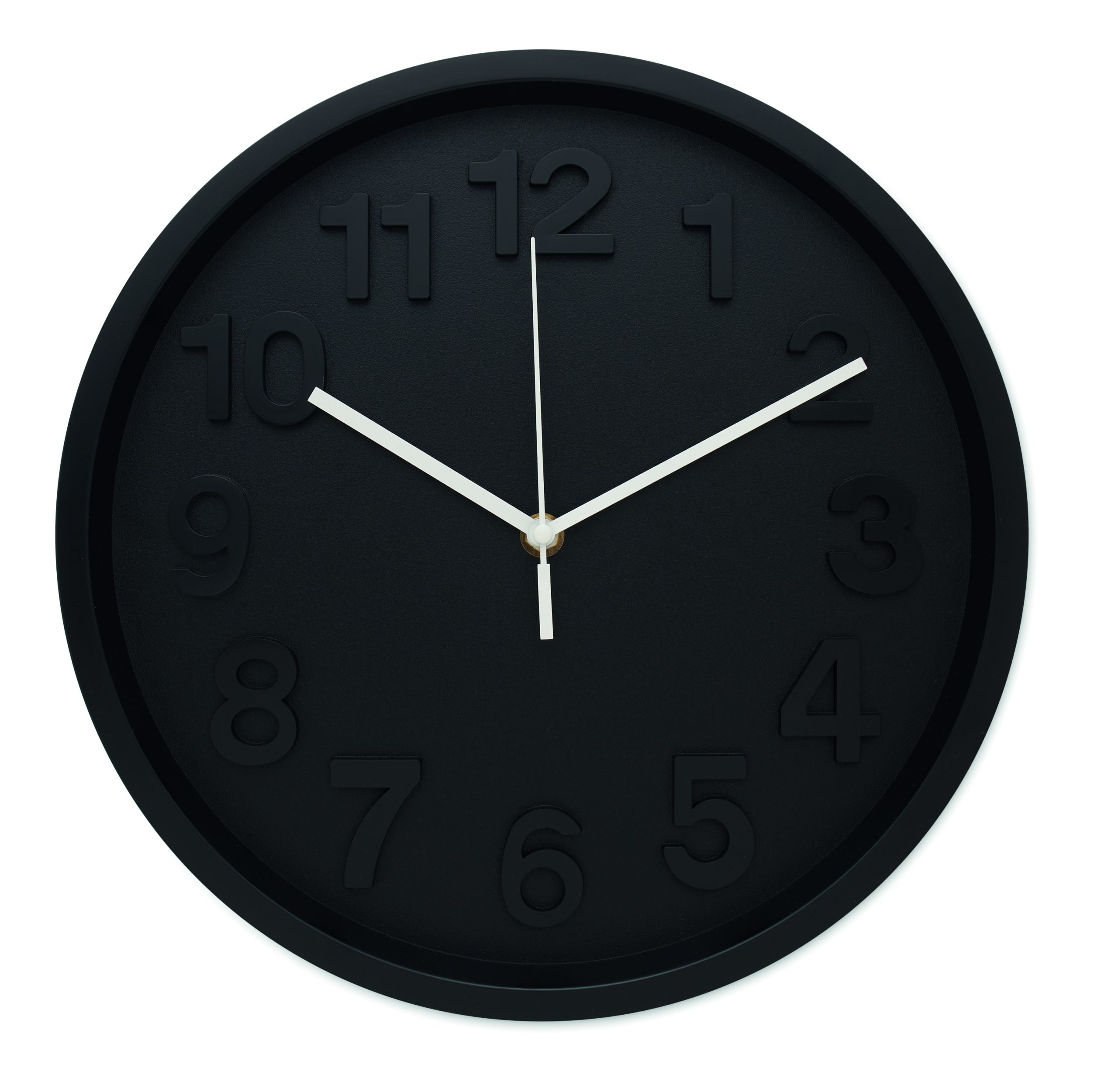 Wall clock in PP with aluminium hands and silent movement. Requires 1 AA battery (not included).