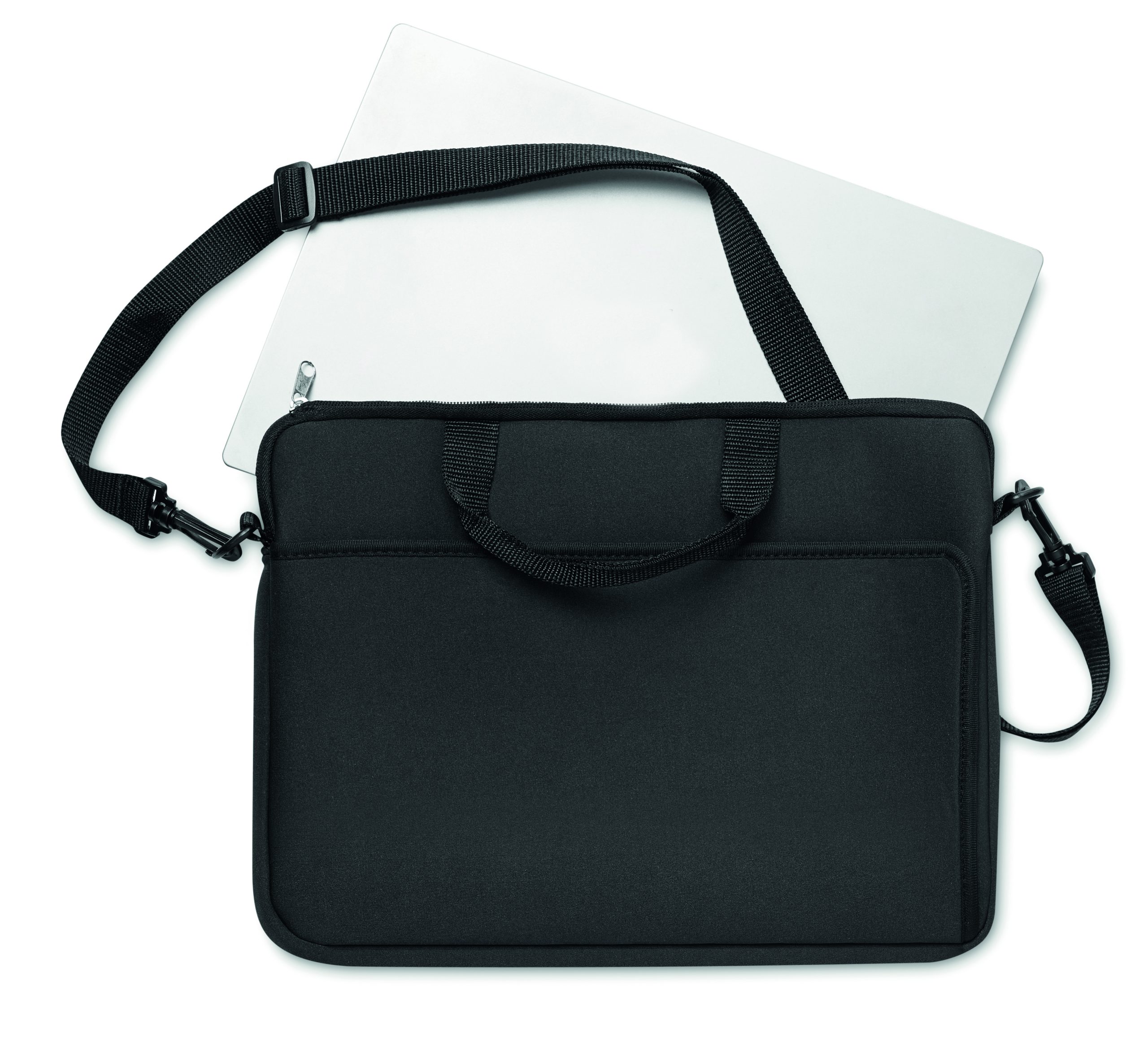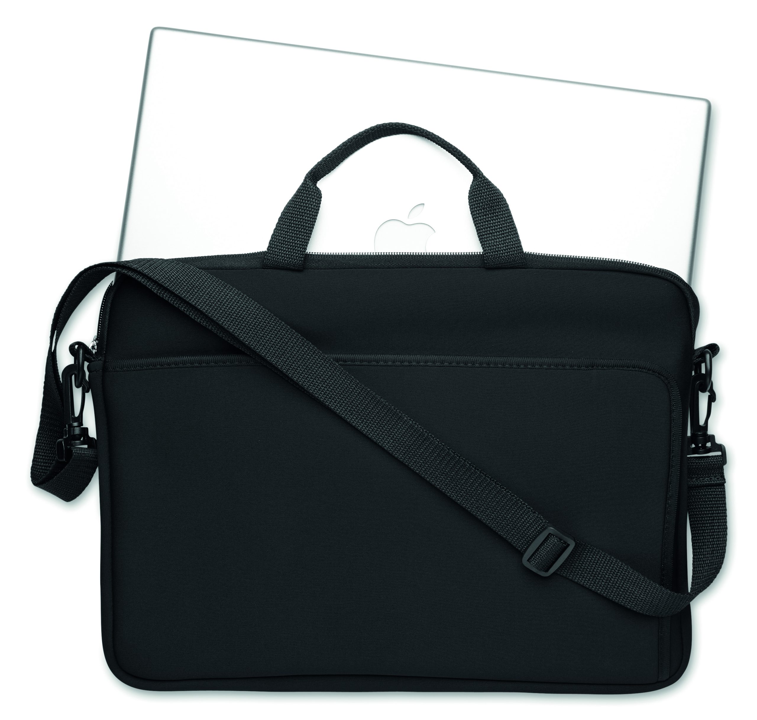 14 inch laptop pouch in neoprene with handle and adjustable and detachable shoulder strap.