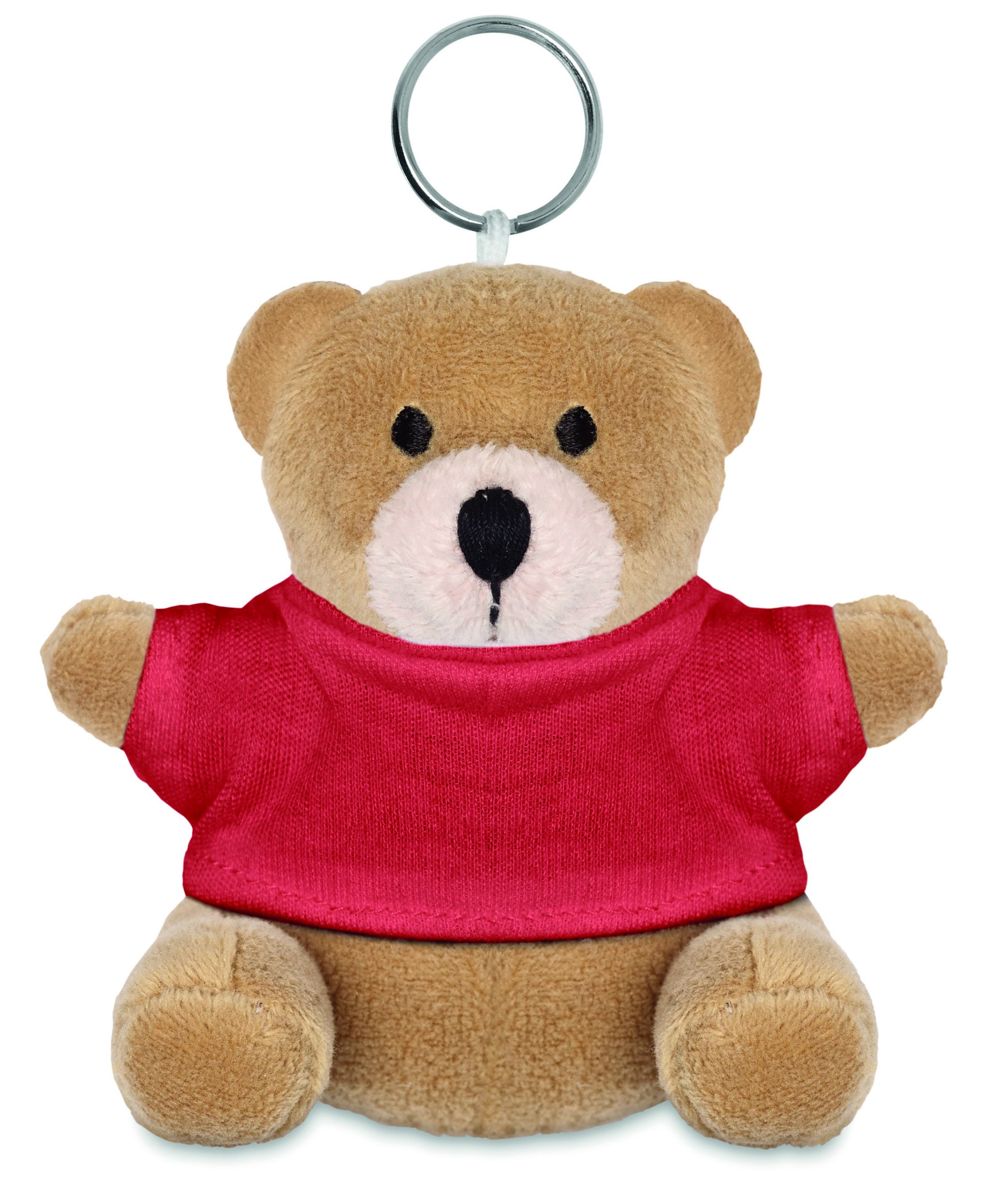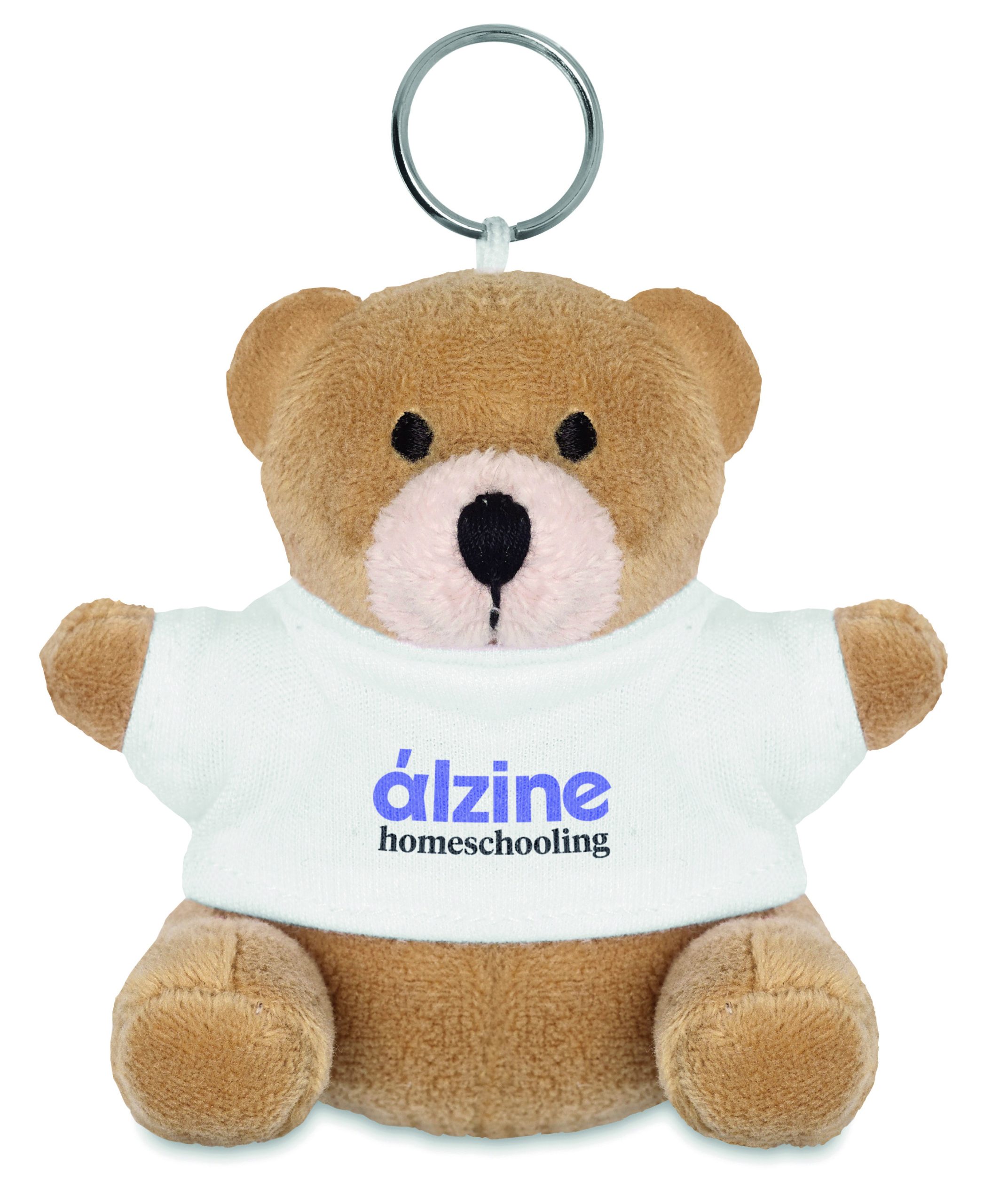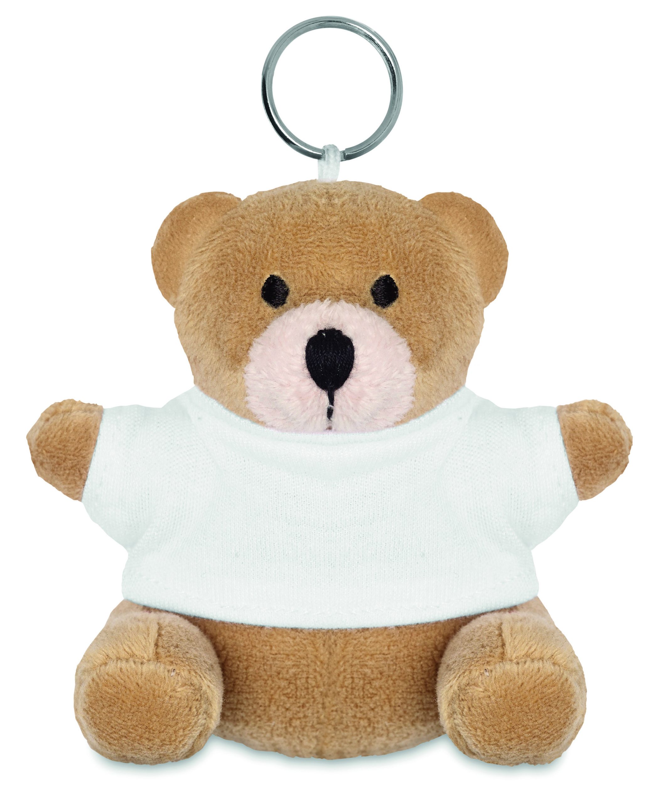 Teddy bear plush key ring. 100% cotton t-shirt for logo imprint.