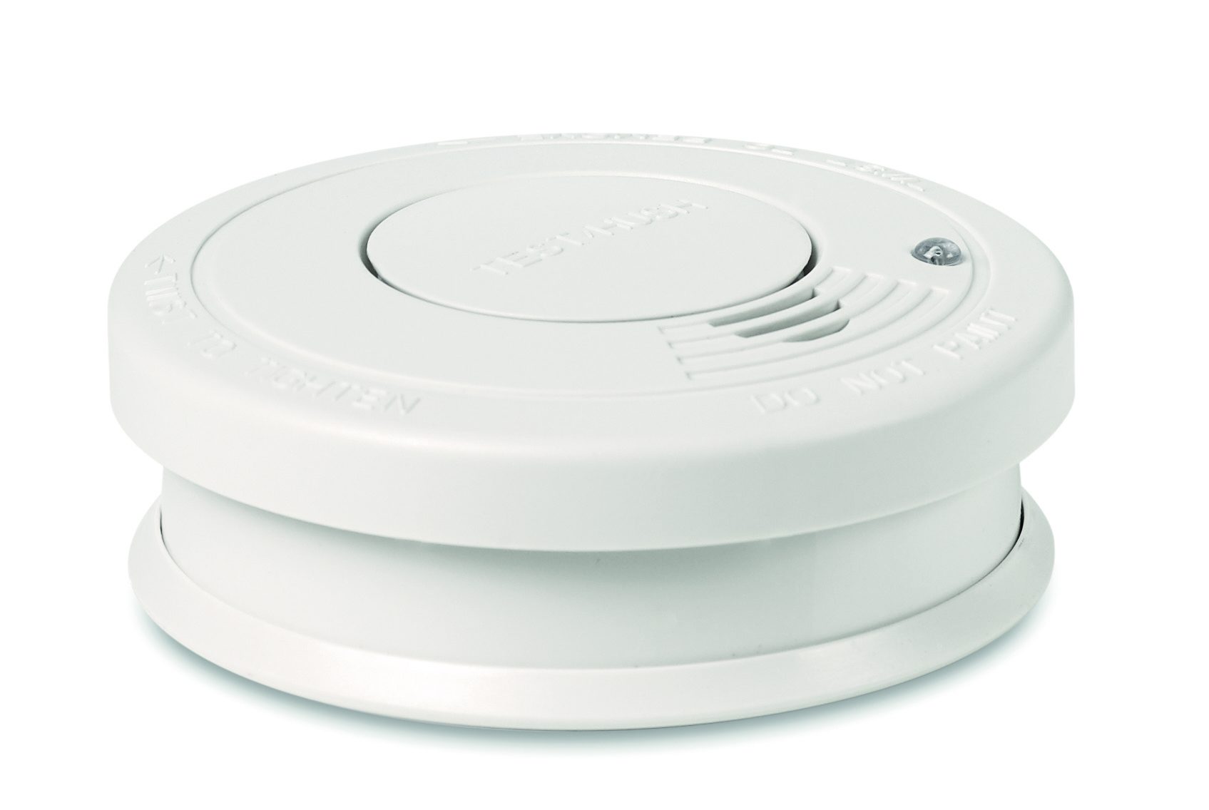 Smoke detector in plastic casing with red operating light. Includes 2 screws for easy fixing. One 9 Volt battery included.