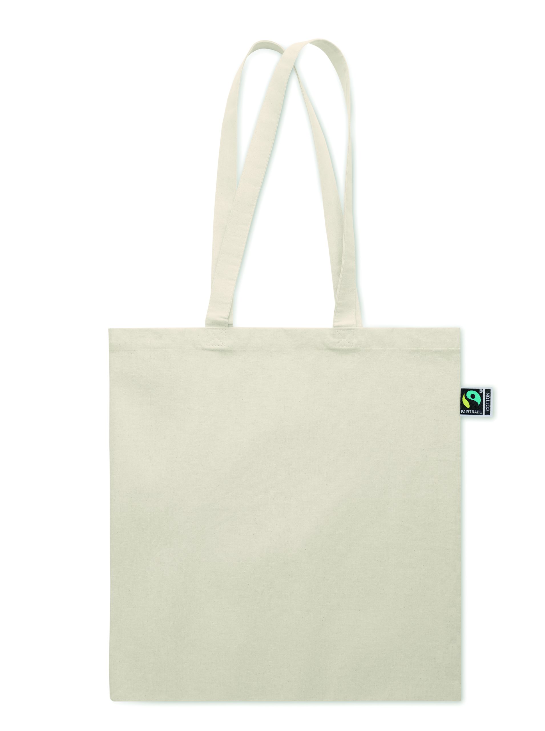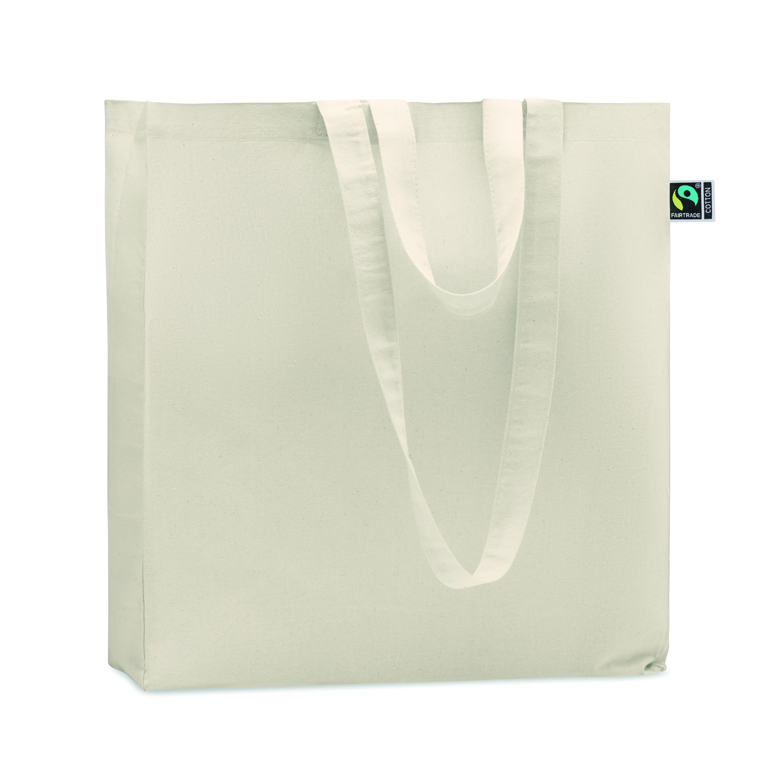 Shopping bag with long handles and gusset made of Fairtrade cotton. 180 gr/m².