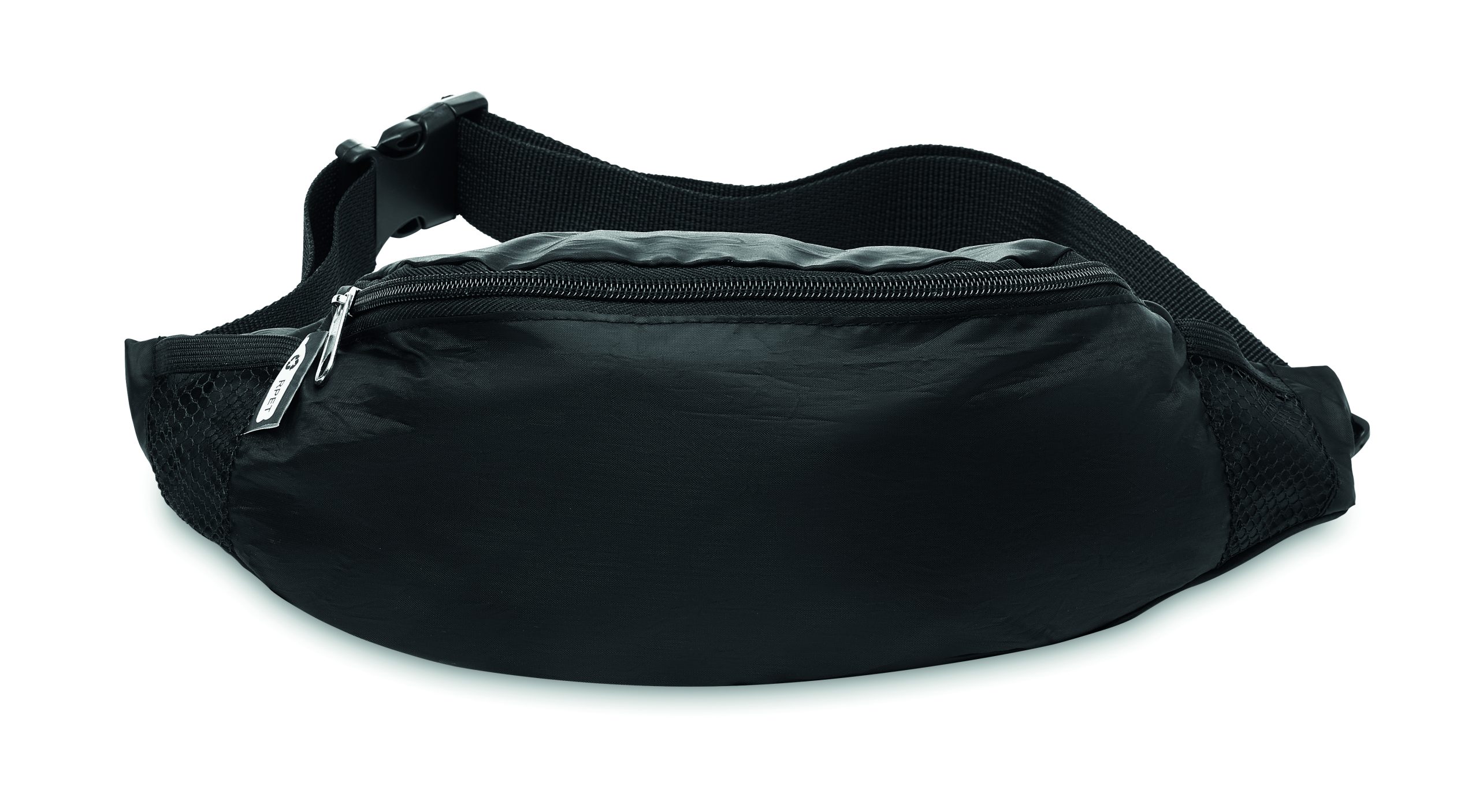 Fanny bag in 210D RPET with zippered main compartment and adjustable waist strap.